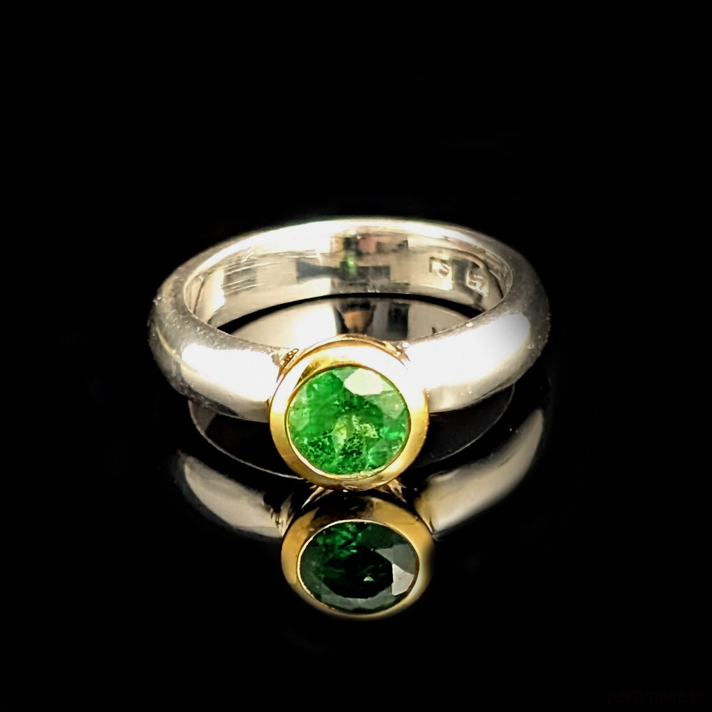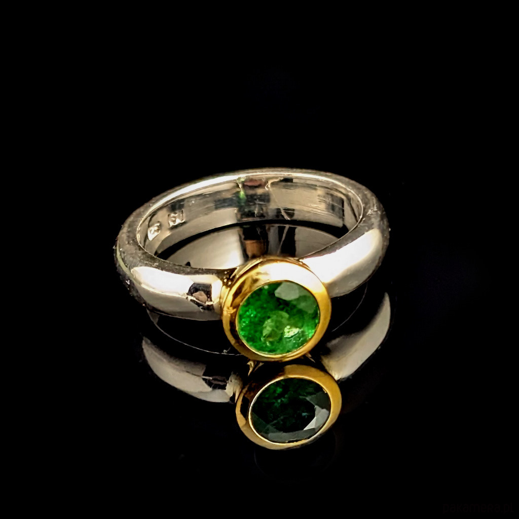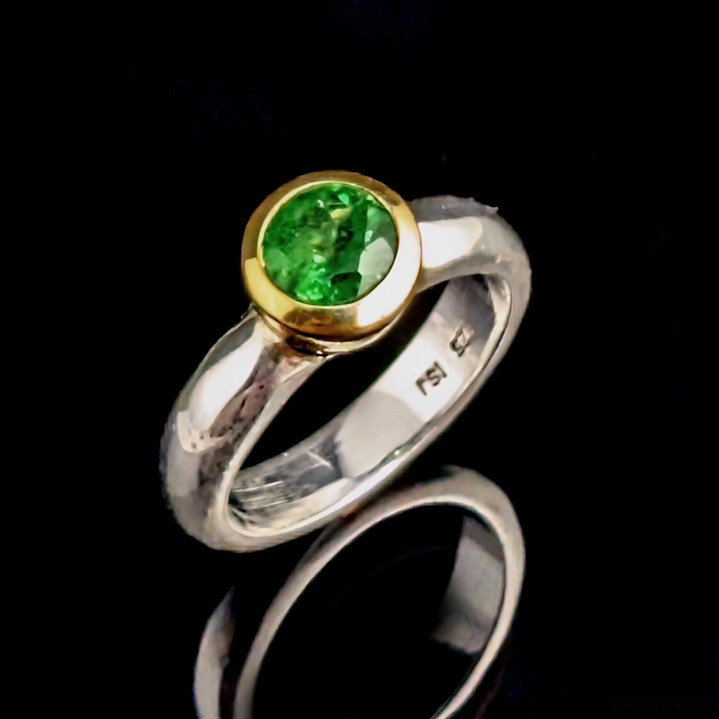 Pierścionek szlachetny tsavoryt w zlotym blasku