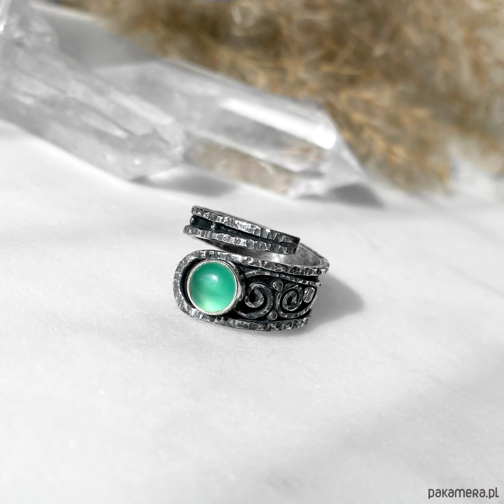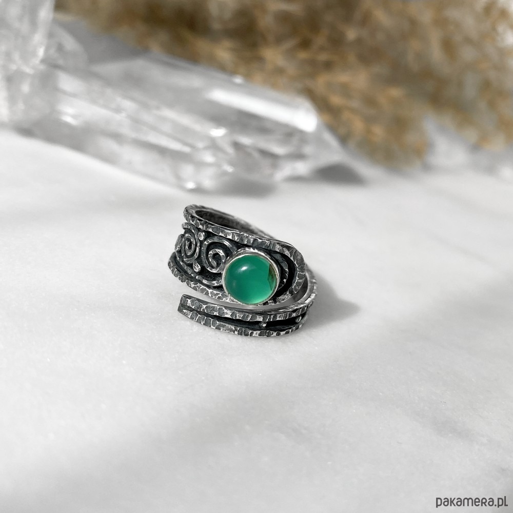 Pierścionek Szmaragdowe zawijasy - srebrny, regulowany