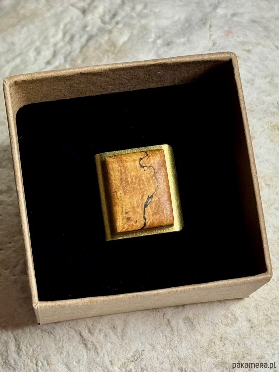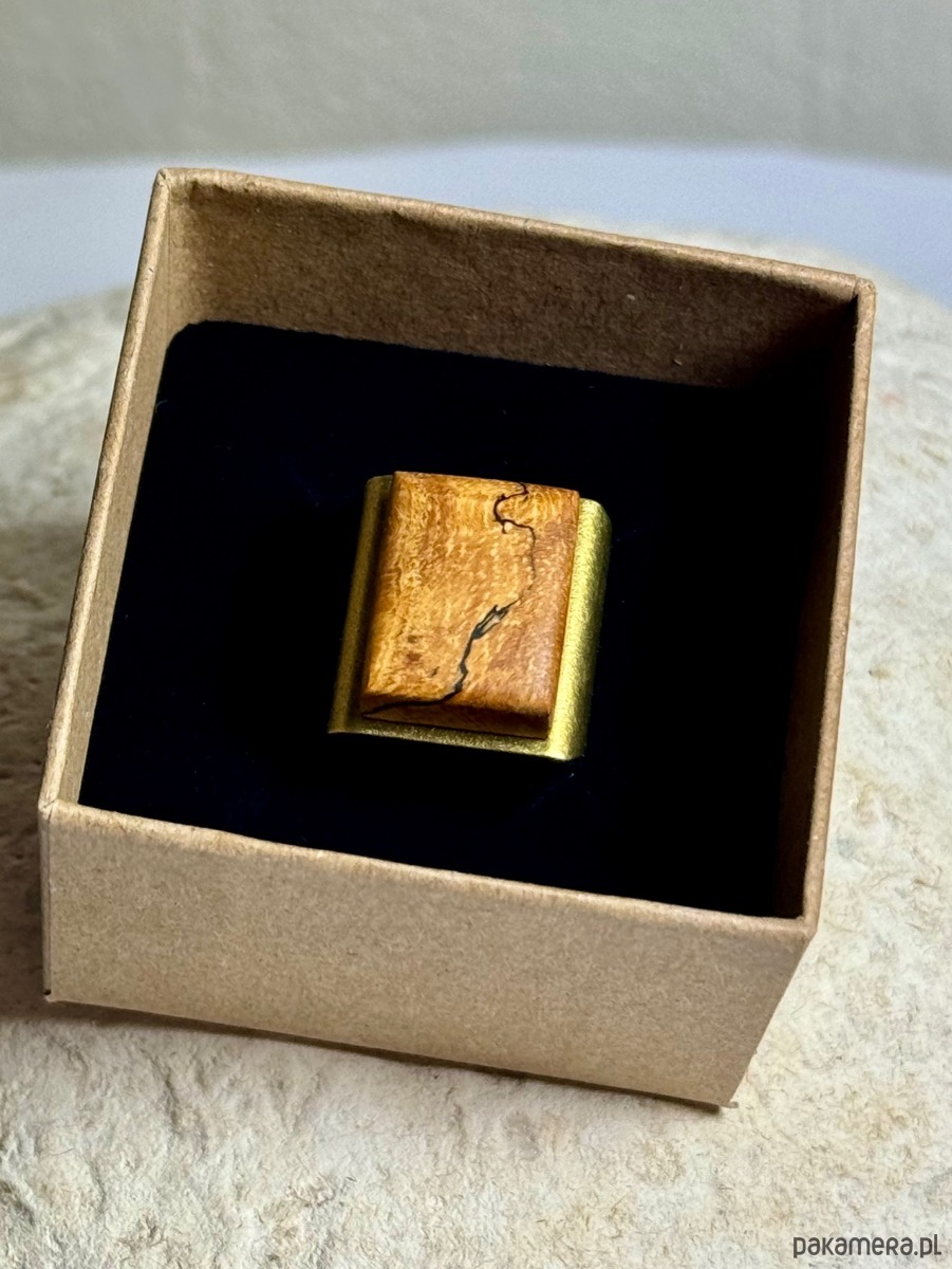 Pierścionek: Zagrzybiony Tamaryndowiec (Spalted Tamarind Wood) zabezpieczony naturalnym olejem lnianym, regulowany pierścionek z miedzi
