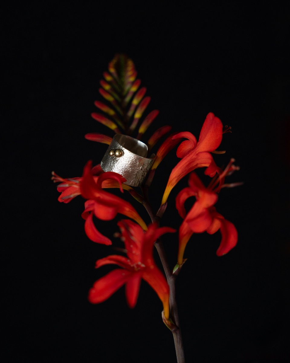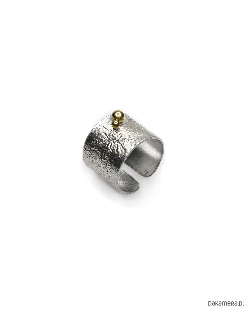 Elegancki i nowoczesny pierścionek TERRA dopełni swym blaskiem minimalistyczne stylizacje. Jego niepowtarzalna faktura powstała w wyniku "rzeźbienia" ogniem w metalu.