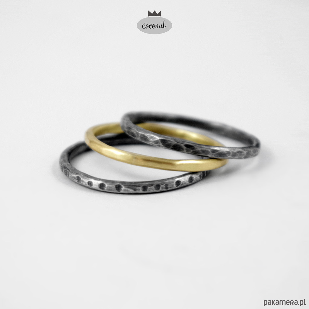 Mix obrączek fakturowanych, satynowanych, oksydowanych.
