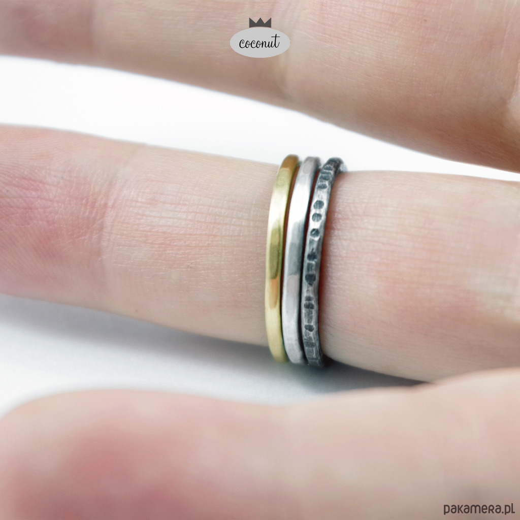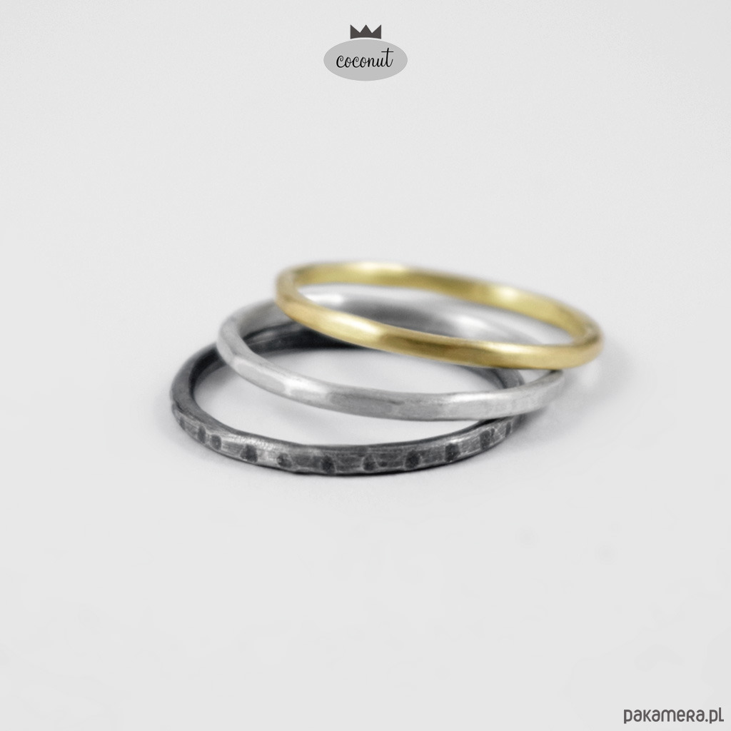 Mix obrączek fakturowanych, satynowanych, oksydowanych.