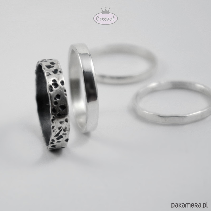 Mix obrączek fakturowanych, polerowanych, satynowanych, oksydowanych.