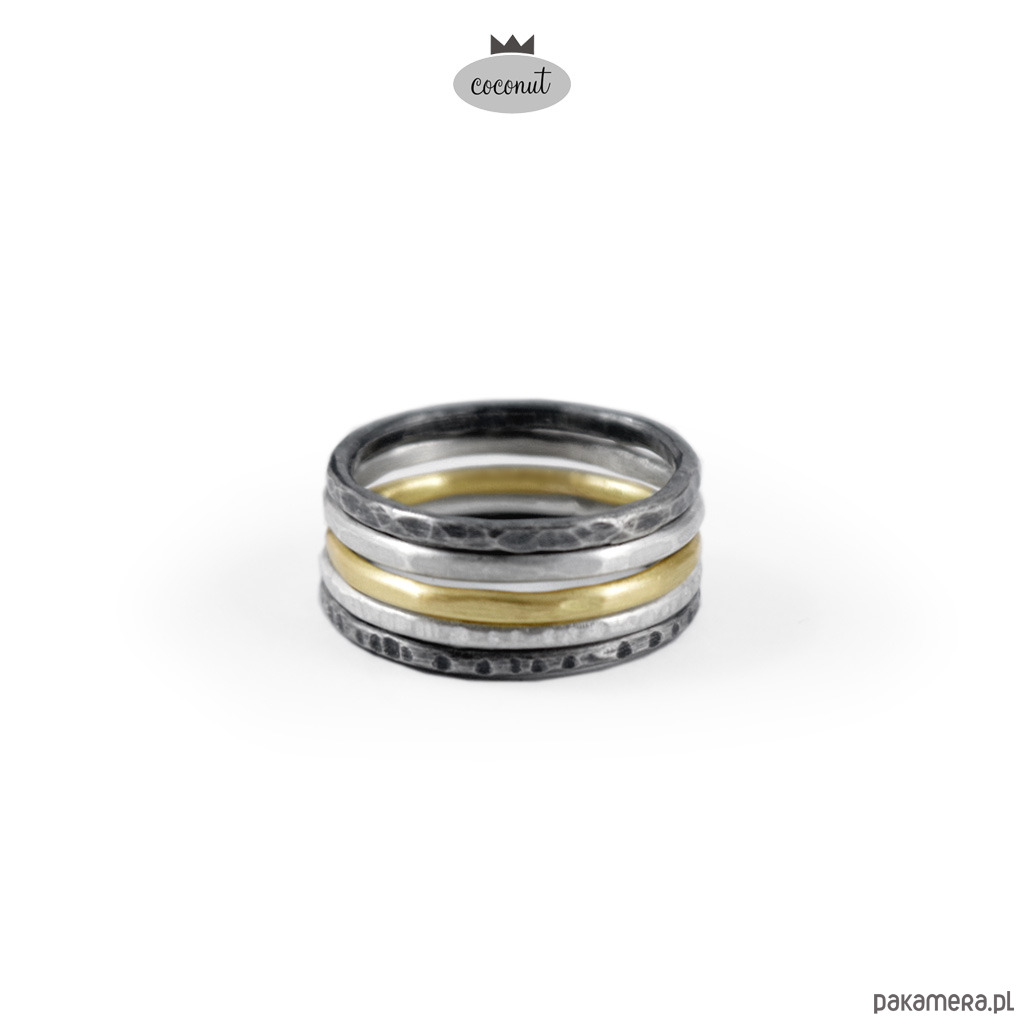 Pierścionek TEXTURE - 5 obrączek srebro T5