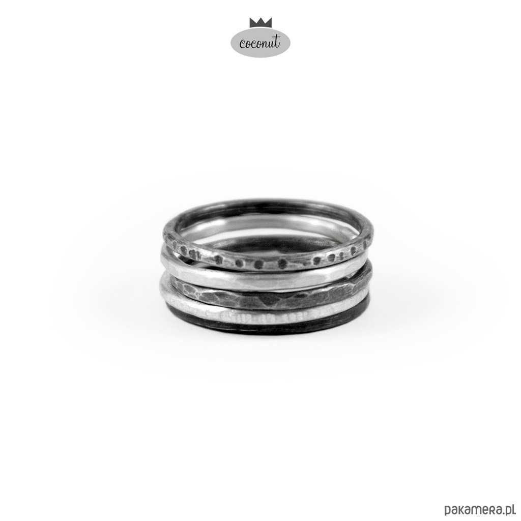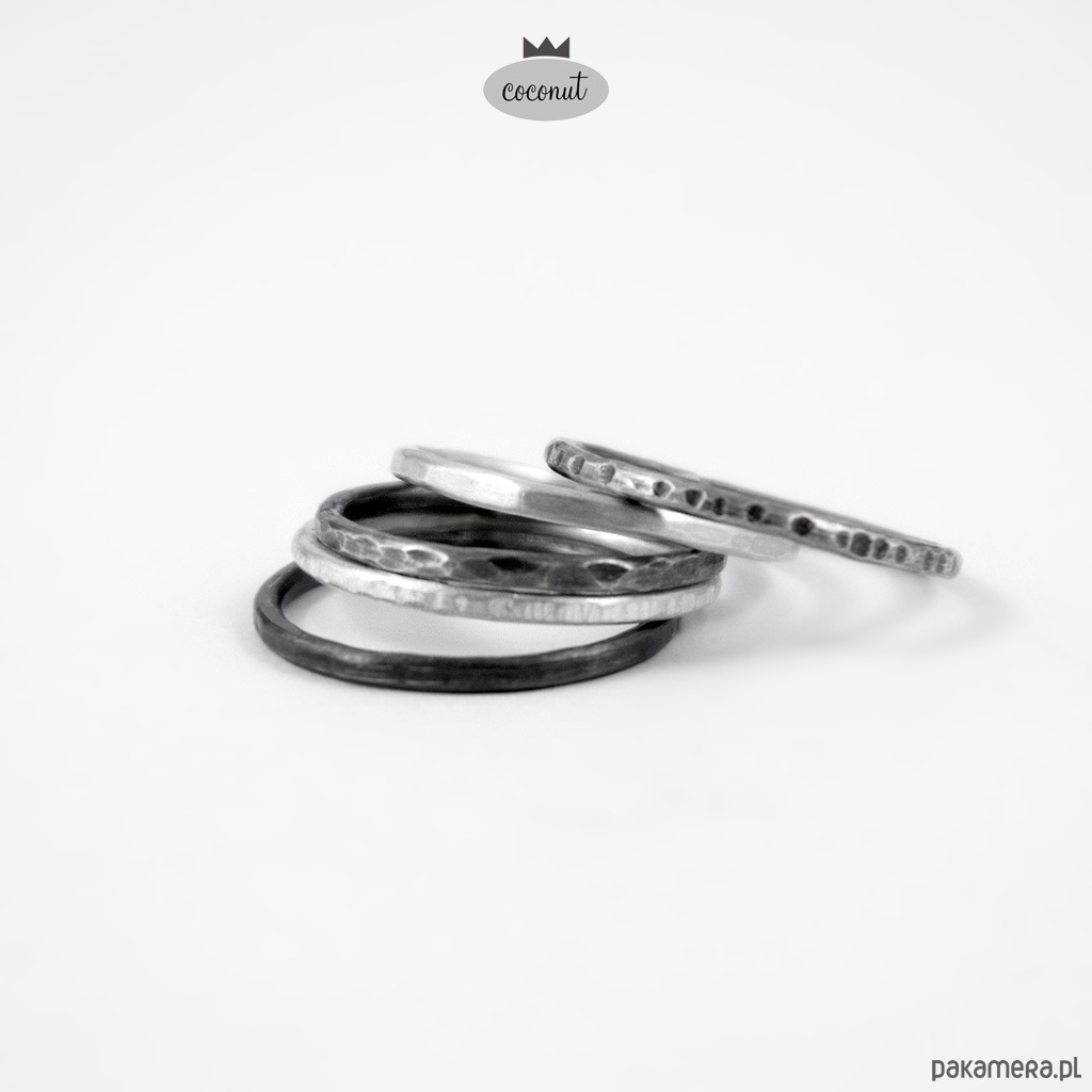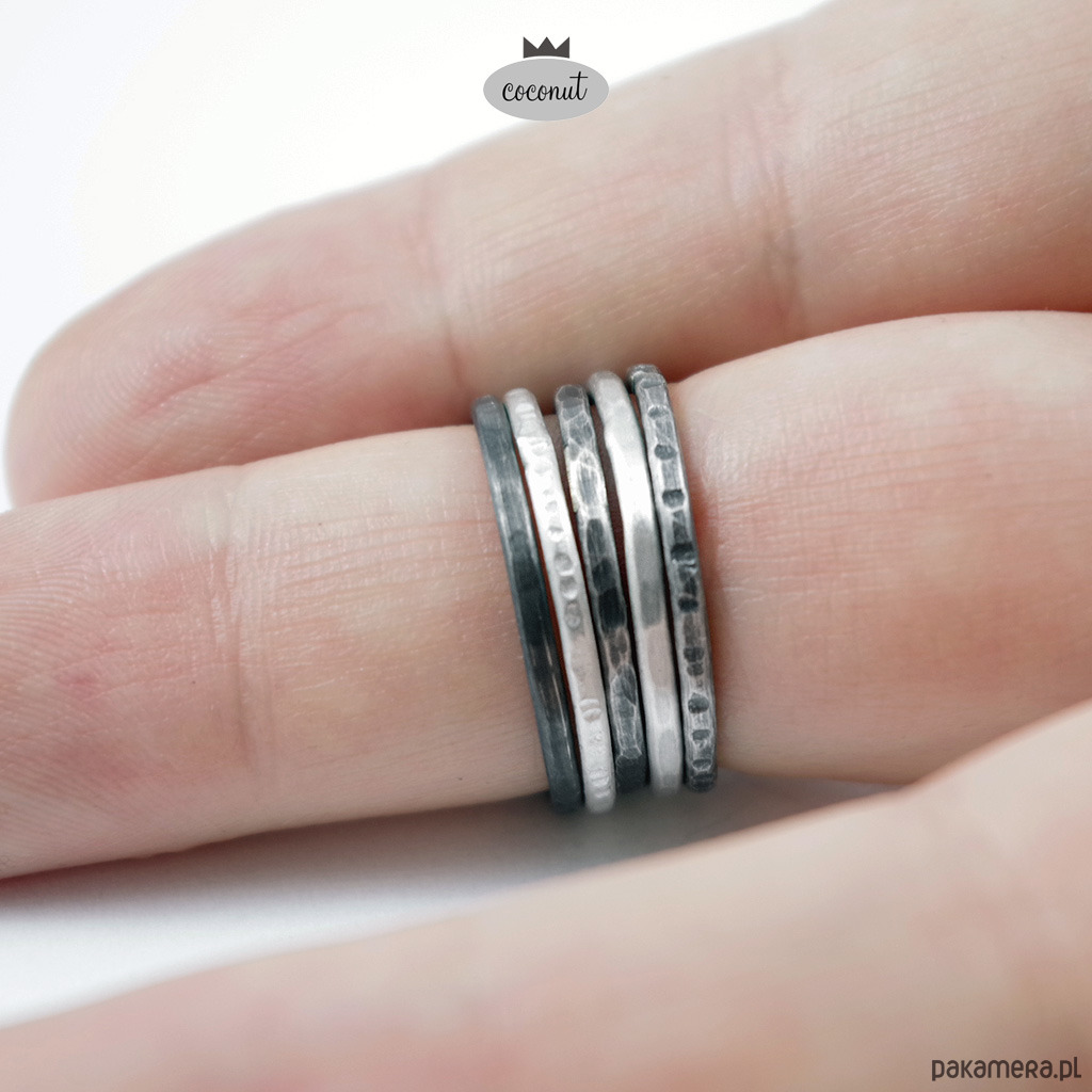 Mix obrączek fakturowanych, satynowanych, oksydowanych.
