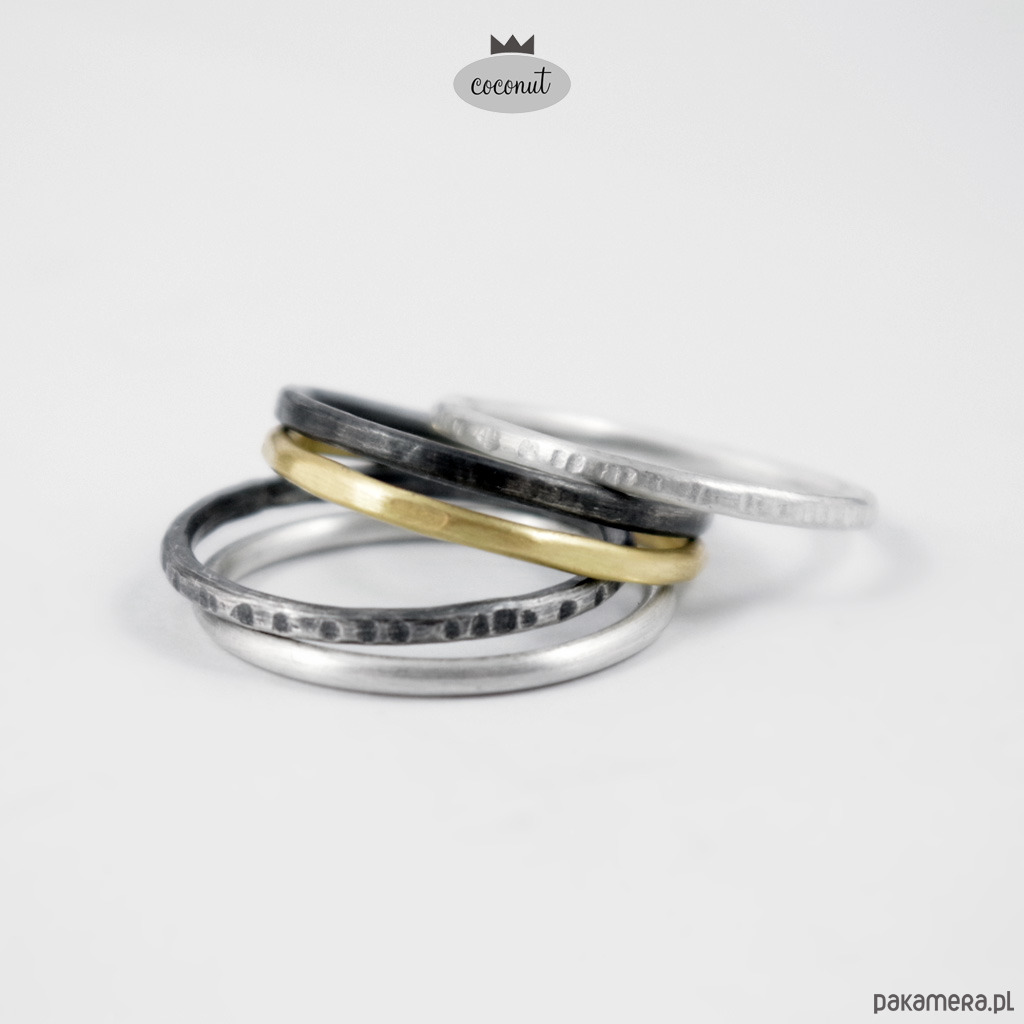 Mix obrączek fakturowanych, satynowanych, oksydowanych.