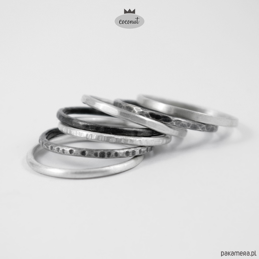 Mix obrączek fakturowanych, satynowanych, oksydowanych.