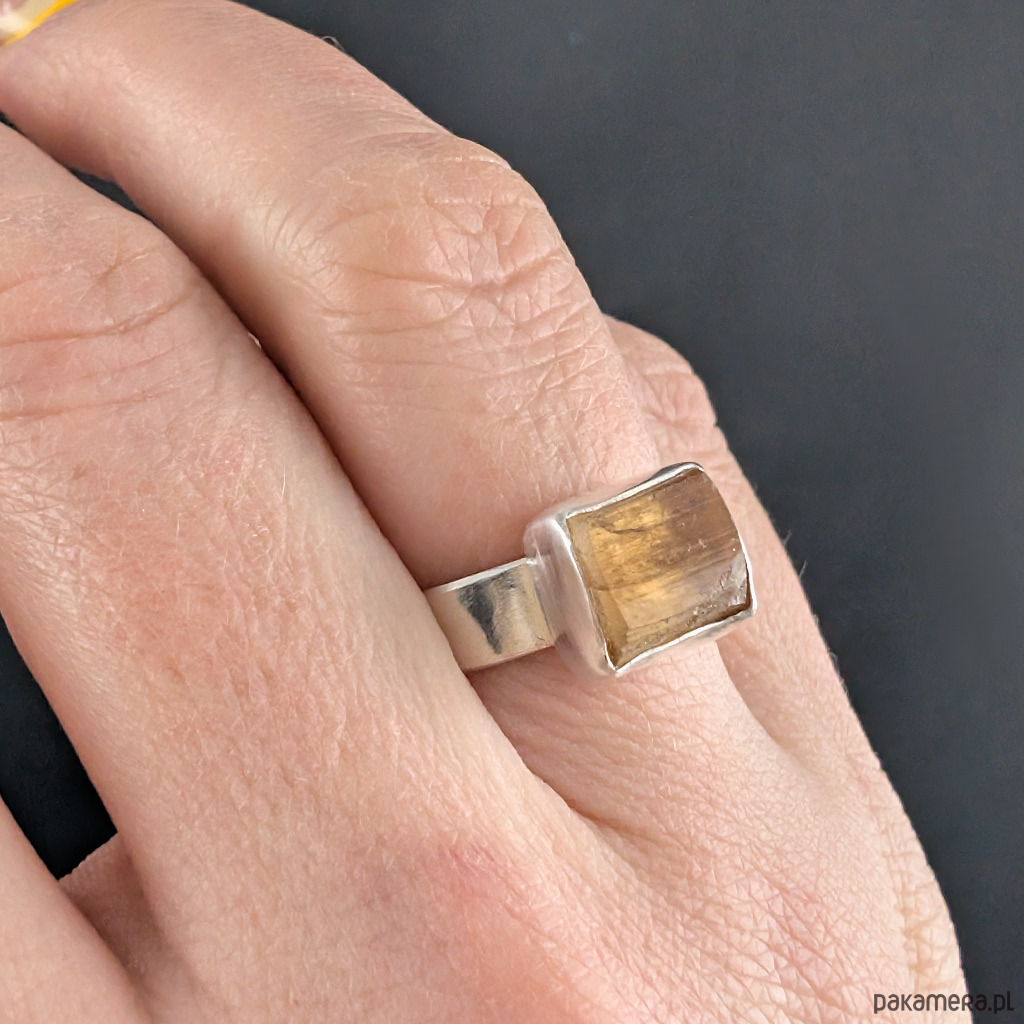 Pierścień wykonany ze srebra próby 925 oraz pieknego topazu imperial w krystalicznej odsłonie o pięknej barwie. Wymiary oprawy 9 x 8 mm. Rozmiar jubilerski 15, mogę dopazsować w wąskim zakresie 15-6, proszę napisać na jaki dopasować.Waga 4,6 g. Pierścień zostanie zapakowany w eleganckie pudełeczko.