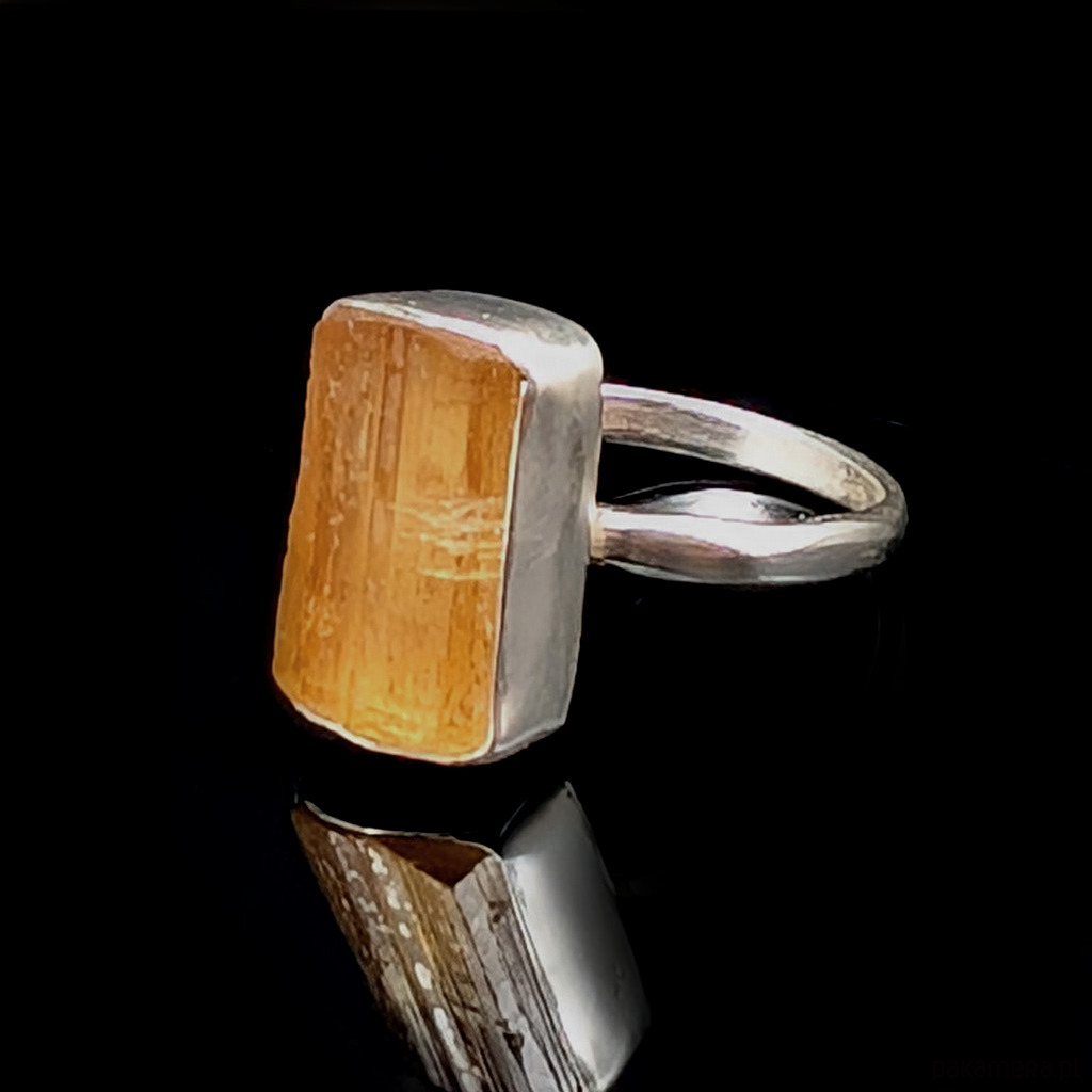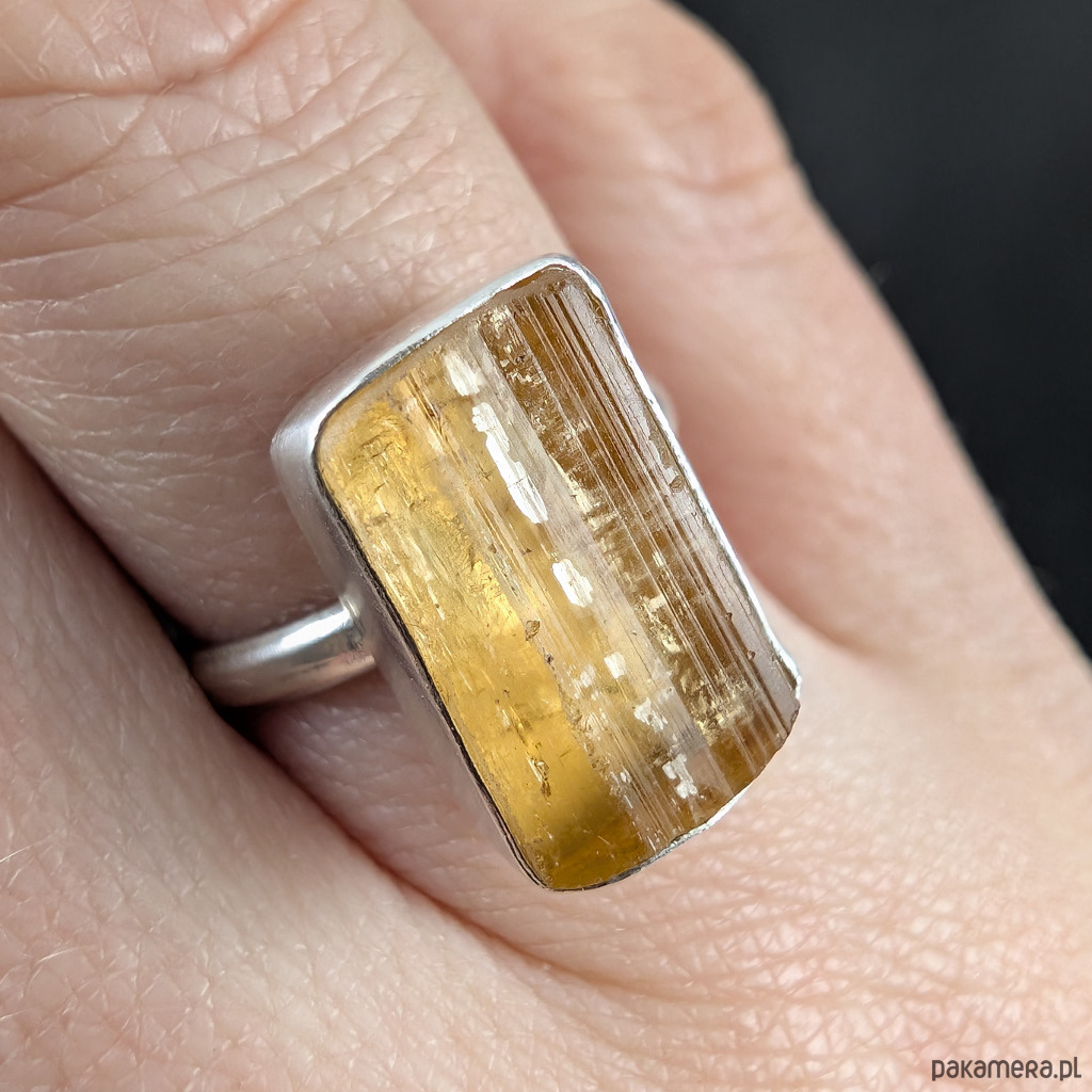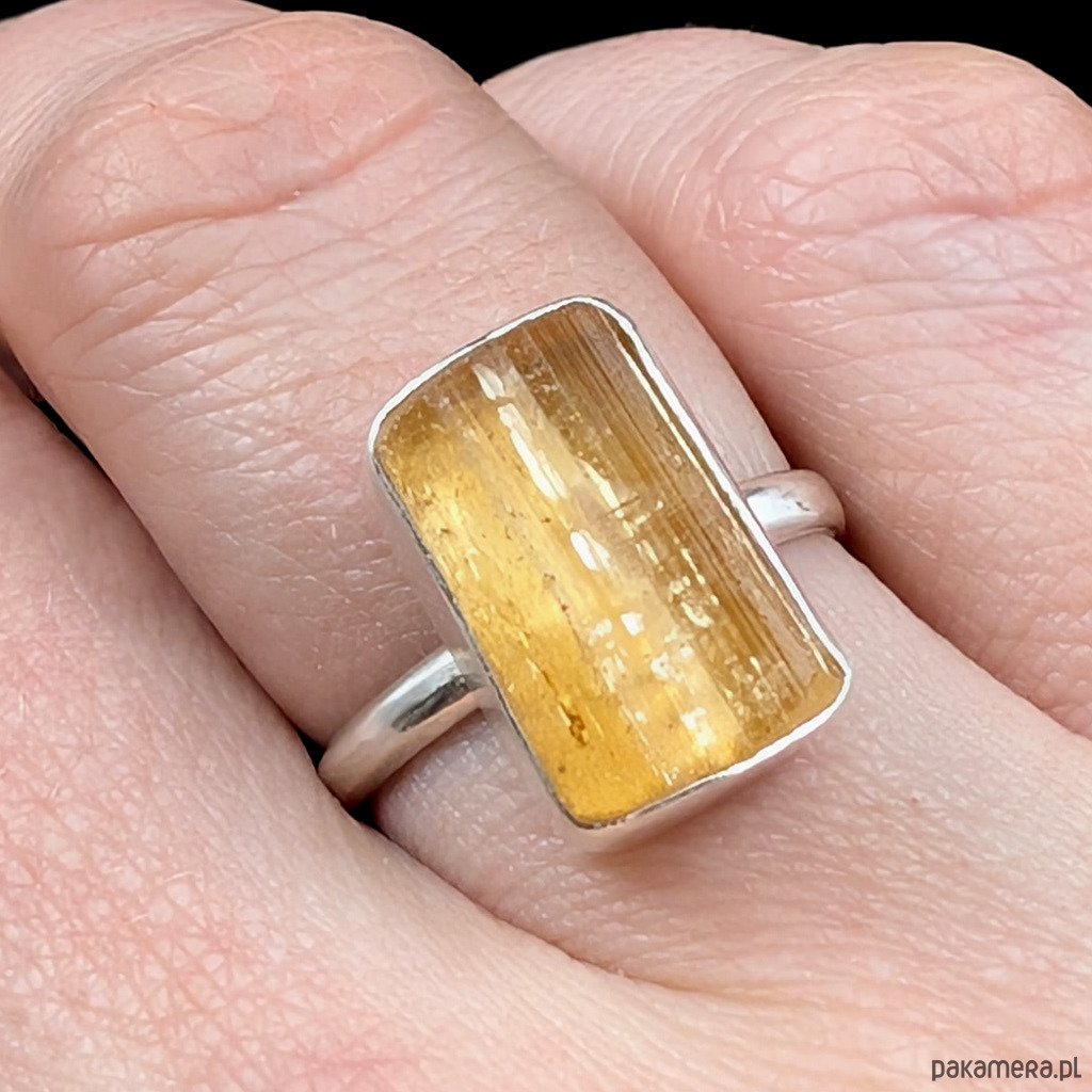 Pierścień wykonany ze srebra próby 925 oraz pieknego topazu imperial w krystalicznej odsłonie o pięknej barwie.