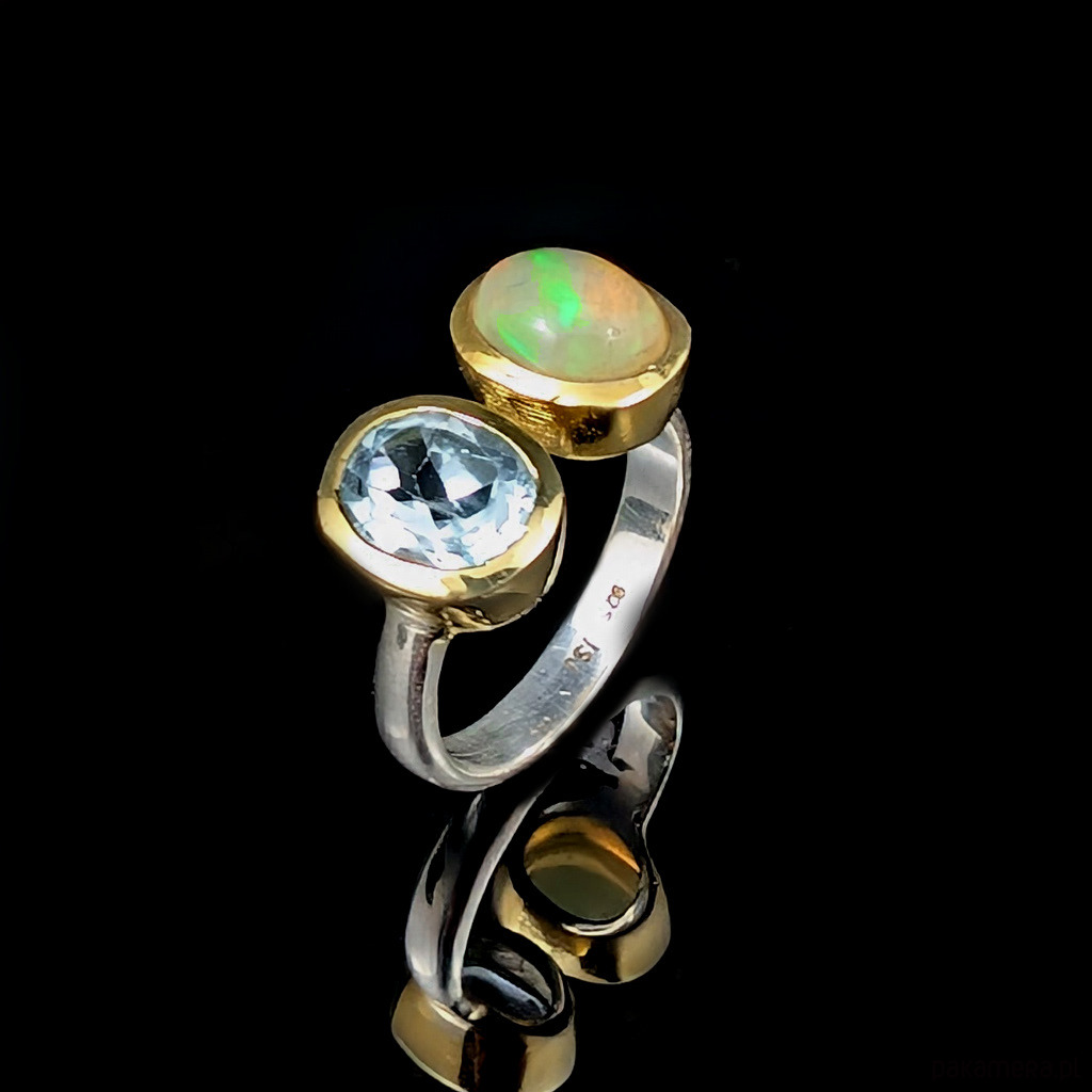 Pierścionek topaz z opalem