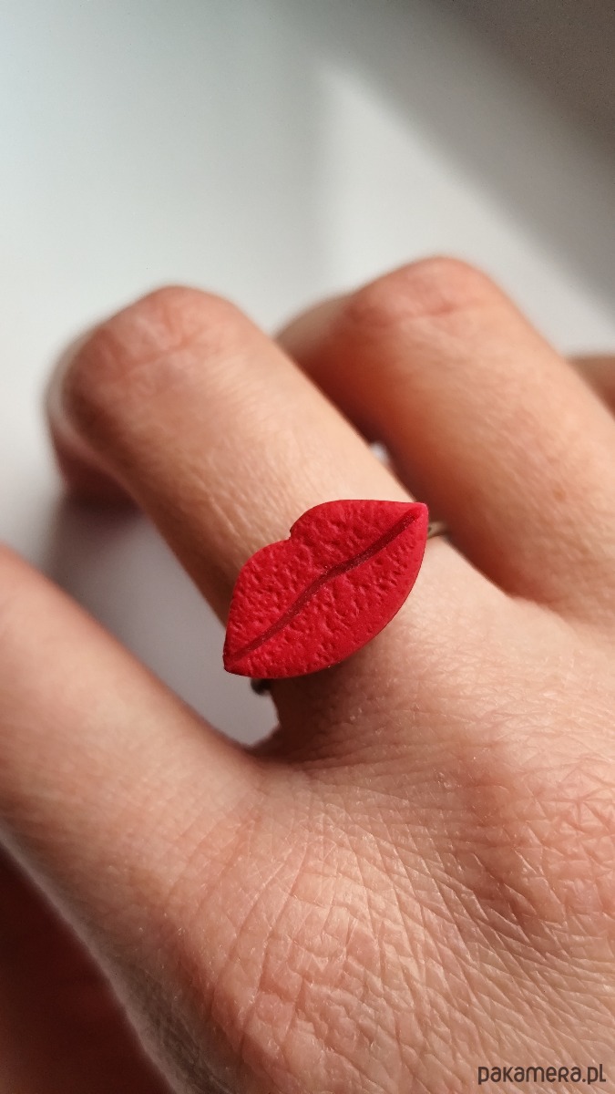 Pierścionek usta w kolorze czerwonym. Elementy metalowe to stal chirurgiczna.