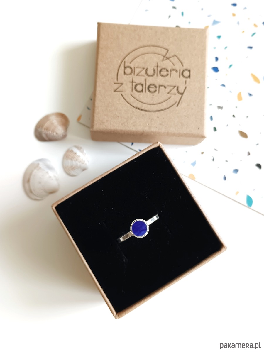 Historia fajansu włocławskiego sięga 1873 roku. Zakładów było kilka, zmieniali się właściciele i lokalizacje. Produkcja najbardziej rozwinęła się po II WŚ, kiedy w miejscowych zakładach powstawał nie tylko fajans, ale również porcelit i porcelana. Zróżnicowane było także wzornictwo - produkowano nie tylko naczynia, ale również elementy wyposażenia wnętrz (lampy, świeczniki, żyrandole). Mimo tej różnorodności, najbardziej rozpoznawalnym wyrobem z Włocławka jest talerz w ręcznie malowane kobaltowe kwiaty (z takich najchętniej korzystam :). I mimo, że najdłużej działająca fabryka zakończyła działalność w 1991 roku, dzięki lokalnym inicjatywom produkcja fajansu została wznowiona i trwa do dziś! Oto pierścionek, który wykonałam z fragmentu fajansu włocławskiego ręcznie malowanego w kobaltowe wzory. Kawałek stłuczki oszlifowałam w okrągły kształt i połączyłam z bazą wykonaną ze srebra próby 925. Rozmiar: 11 (możliwość powiększenia o 1-2 rozmiary). Średnica "oczka" - elementu ceramicznego: 6 mm. Unikat - każdy z moich wyrobów występuje w jednym egzemplarzu. Upcykling - nie reprodukuję wykorzystywanych wzorów, niczego nie domalowuję - wykorzystuję wyłącznie oryginalne naczynia i motywy, które się na nich znajdują. Tym samym, stłuczce z odzysku nadaję nowe życie.