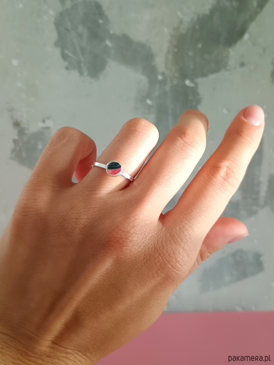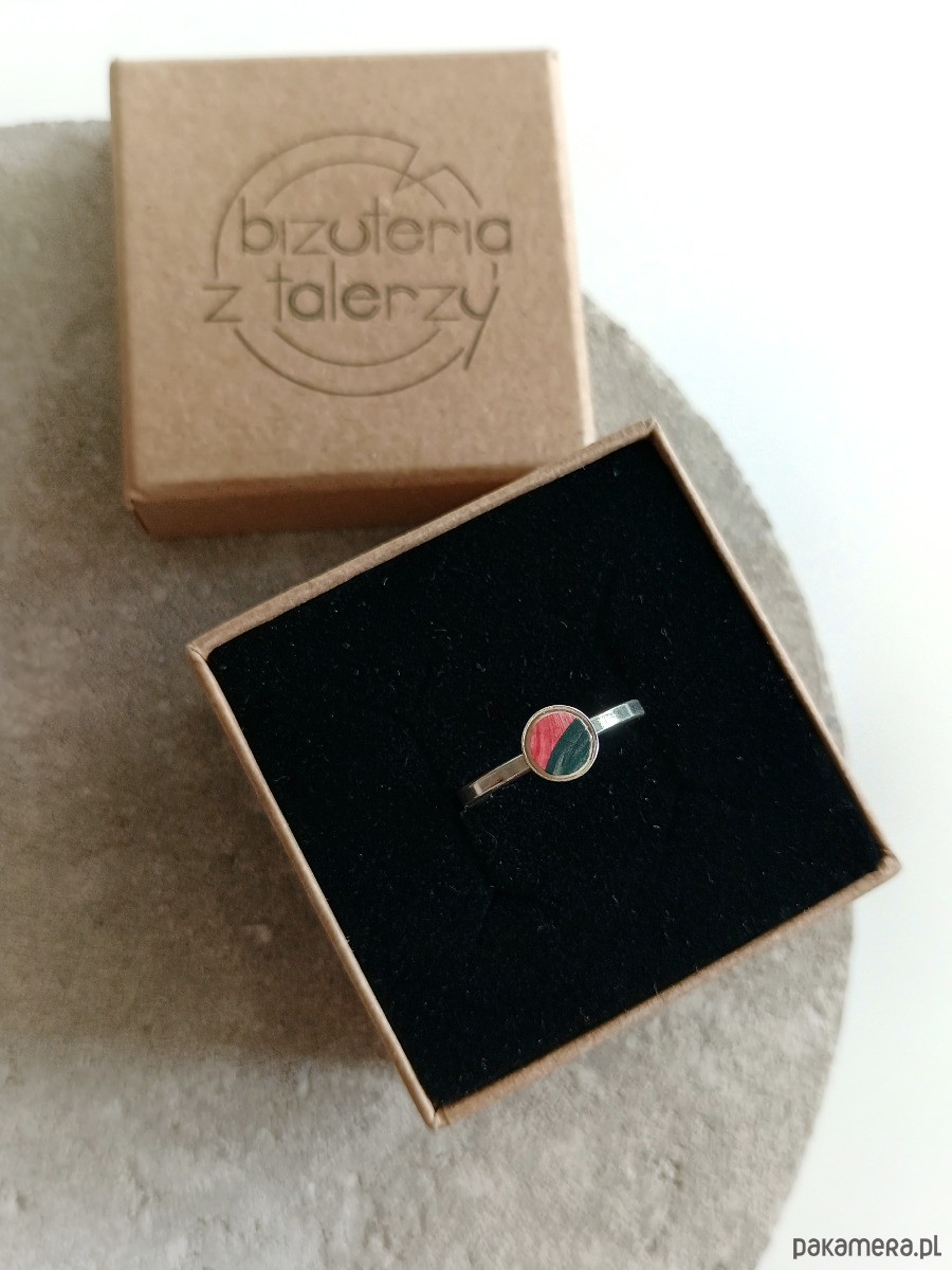 Historia fajansu włocławskiego sięga 1873 roku. Zakładów było kilka, zmieniali się właściciele i lokalizacje. Produkcja najbardziej rozwinęła się po II WŚ, kiedy w miejscowych zakładach powstawał nie tylko fajans, ale również porcelit i porcelana. Zróżnicowane było także wzornictwo - produkowano nie tylko naczynia, ale również elementy wyposażenia wnętrz (lampy, świeczniki, żyrandole). Mimo tej różnorodności, najbardziej rozpoznawalnym wyrobem z Włocławka jest talerz w ręcznie malowane kobaltowe kwiaty (z takich najchętniej korzystam :). I mimo, że najdłużej działająca fabryka zakończyła działalność w 1991 roku, dzięki lokalnym inicjatywom produkcja fajansu została wznowiona i trwa do dziś! Oto pierścionek, który wykonałam z fragmentu fajansu włocławskiego ręcznie malowanego w kolorowe wzory. Kawałek stłuczki oszlifowałam w okrągły kształt i połączyłam z bazą wykonaną ze srebra próby 925. Rozmiar: 15 (możliwość powiększenia o 1-2 rozmiary). Średnica "oczka" - elementu ceramicznego: 6 mm. Unikat - każdy z moich wyrobów występuje w jednym egzemplarzu. Upcykling - nie reprodukuję wykorzystywanych wzorów, niczego nie domalowuję - wykorzystuję wyłącznie oryginalne naczynia i motywy, które się na nich znajdują. Tym samym, stłuczce z odzysku nadaję nowe życie.