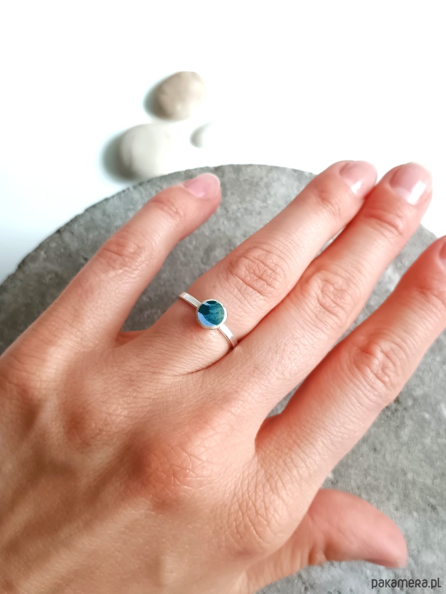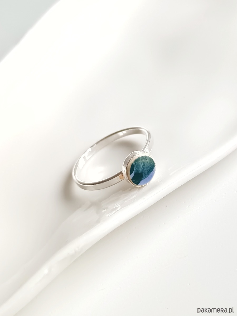 Historia fajansu włocławskiego sięga 1873 roku. Zakładów było kilka, zmieniali się właściciele i lokalizacje. Produkcja najbardziej rozwinęła się po II WŚ, kiedy w miejscowych zakładach powstawał nie tylko fajans, ale również porcelit i porcelana. Zróżnicowane było także wzornictwo - produkowano nie tylko naczynia, ale również elementy wyposażenia wnętrz (lampy, świeczniki, żyrandole). Mimo tej różnorodności, najbardziej rozpoznawalnym wyrobem z Włocławka jest talerz w ręcznie malowane kobaltowe kwiaty (z takich najchętniej korzystam :). I mimo, że najdłużej działająca fabryka zakończyła działalność w 1991 roku, dzięki lokalnym inicjatywom produkcja fajansu została wznowiona i trwa do dziś! Oto pierścionek, który wykonałam z fragmentu fajansu włocławskiego ręcznie malowanego w kolorowe wzory. Kawałek stłuczki oszlifowałam w okrągły kształt i połączyłam z bazą wykonaną ze srebra próby 925. Rozmiar: 11 (możliwość powiększenia o 1-2 rozmiary). Średnica "oczka" - elementu ceramicznego: 6 mm. Unikat - każdy z moich wyrobów występuje w jednym egzemplarzu. Upcykling - nie reprodukuję wykorzystywanych wzorów, niczego nie domalowuję - wykorzystuję wyłącznie oryginalne naczynia i motywy, które się na nich znajdują. Tym samym, stłuczce z odzysku nadaję nowe życie.