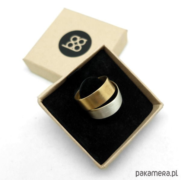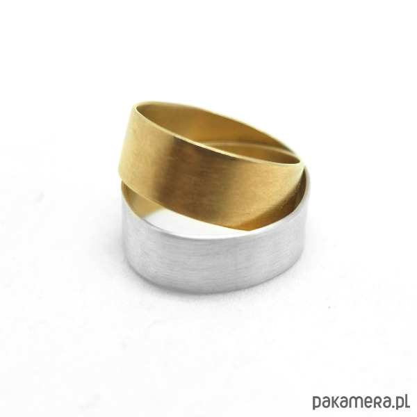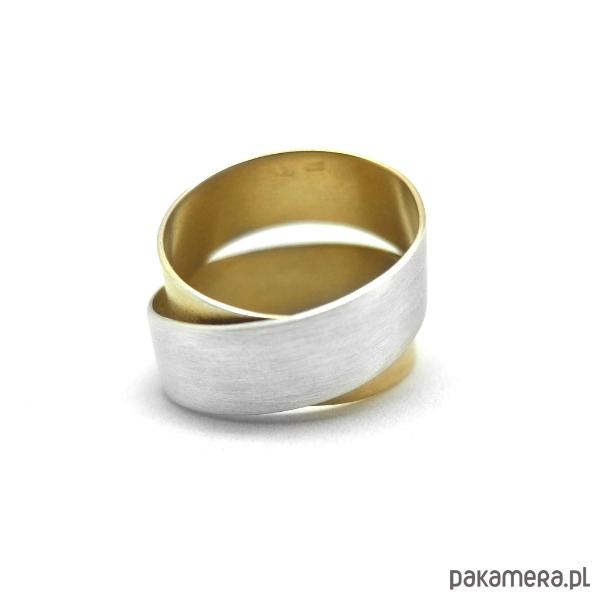 Pierścionek wykonany z jednej szerokiej wstęgi srebra podwójnie zawiniętej. Zewnętrzna powierzchnia pierścionka jest satynowa a wewnątrz wypolerowana. Srebro pokryte jest galwanicznie warstwą czystego złota pr.0,999. Nowoczesny pierścionek ma wybitą próbę srebra 0,925.