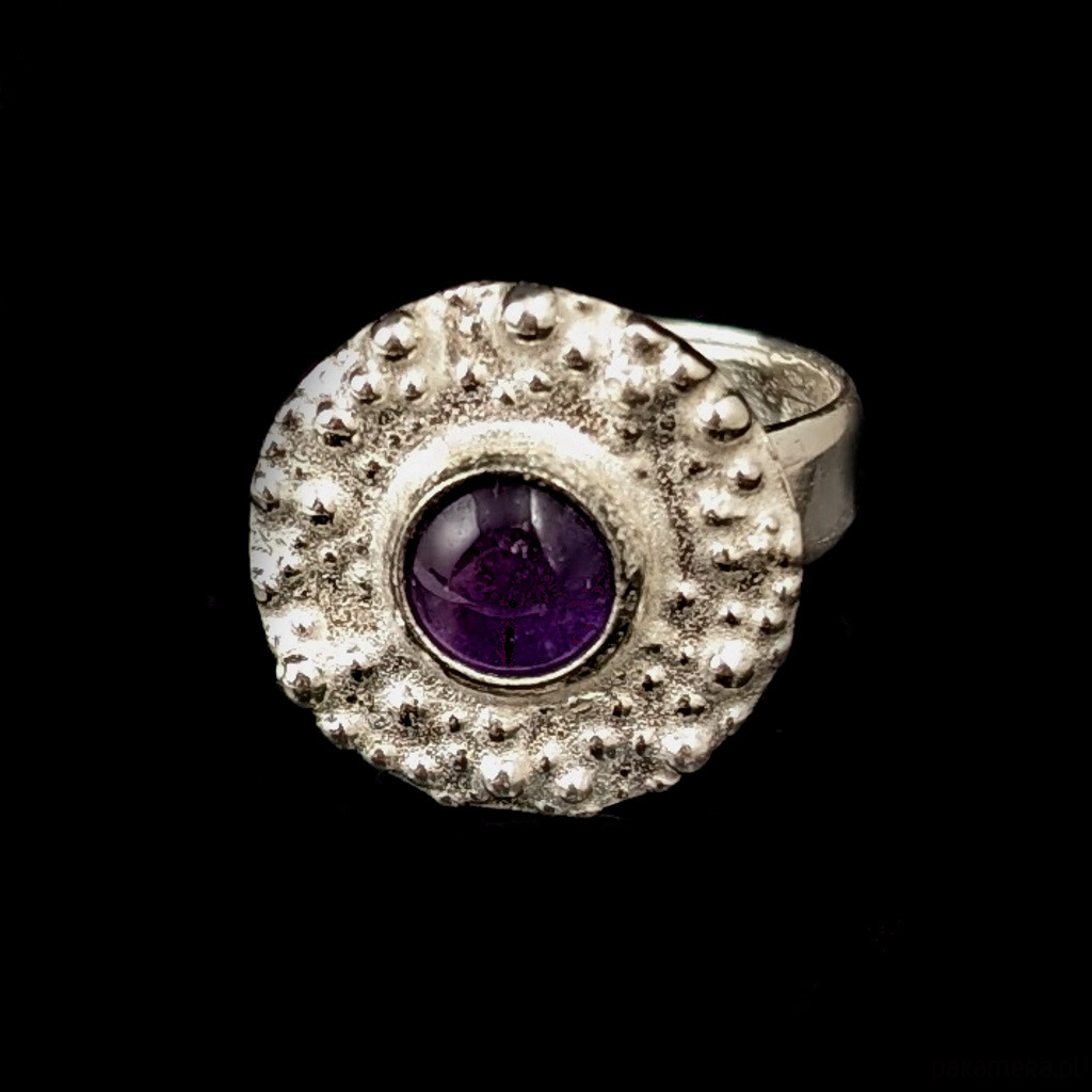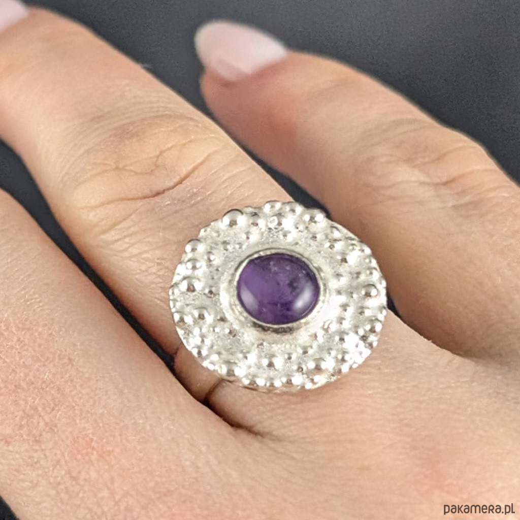 Pierścionek z ametystem w deszczu srebra