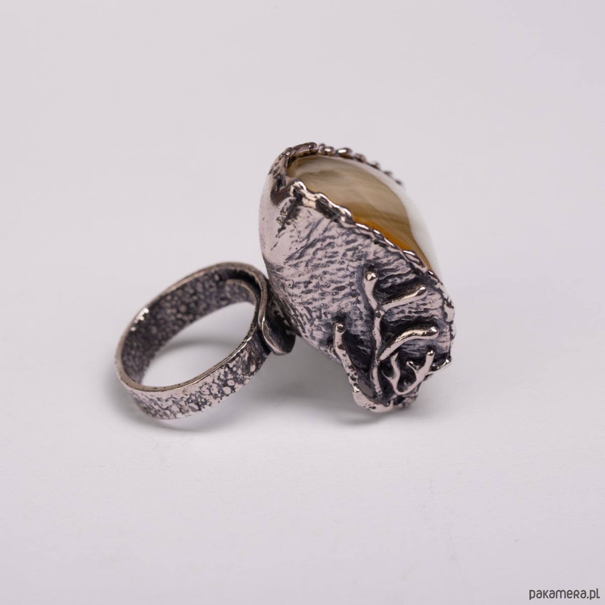Pierścionek z bursztynem bałtyckim morski motyw