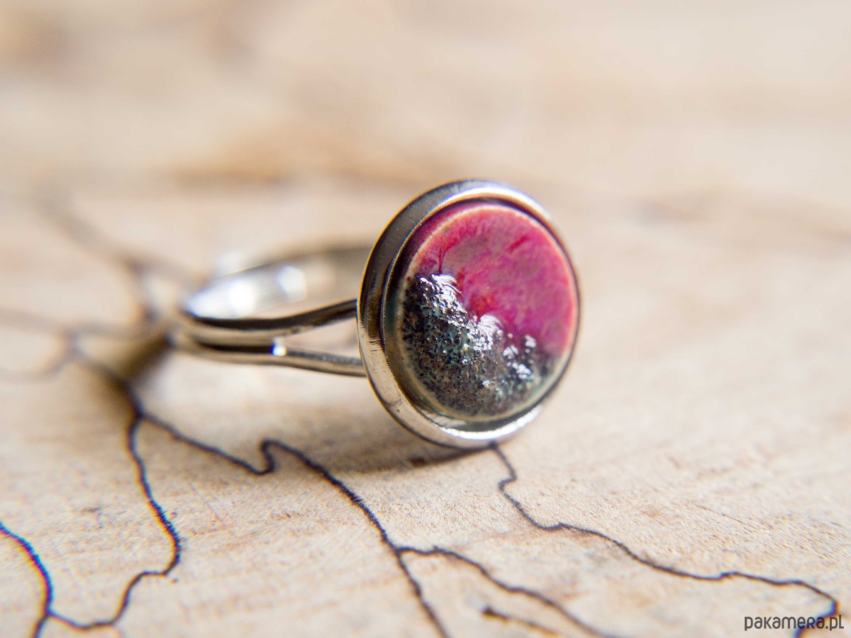 wyjątkowy pierścionek z ceramicznym oczkiem z wypukłością nadającą wyjątkowego charakteru, z bliska przypomina makietę gór nad zatoką :)