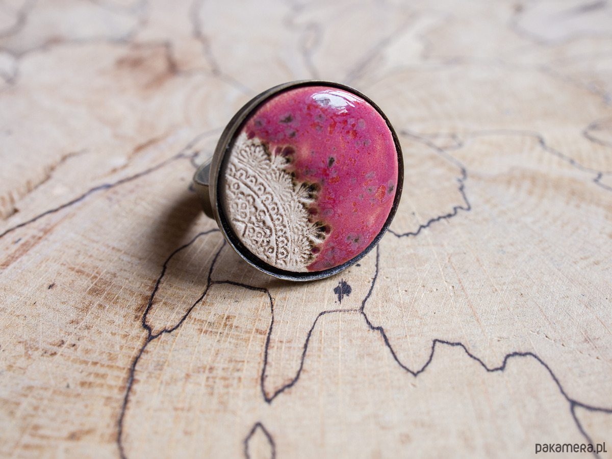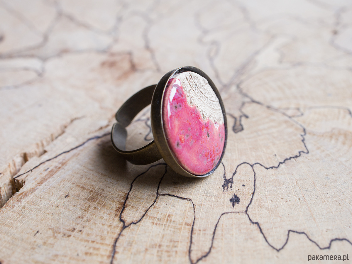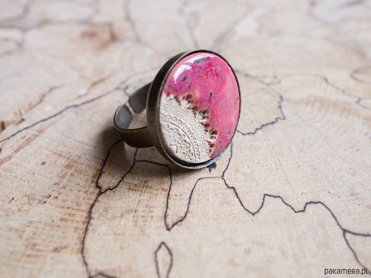 wyjątkowy pierścionek z ceramicznym oczkiem z wzorem mandali