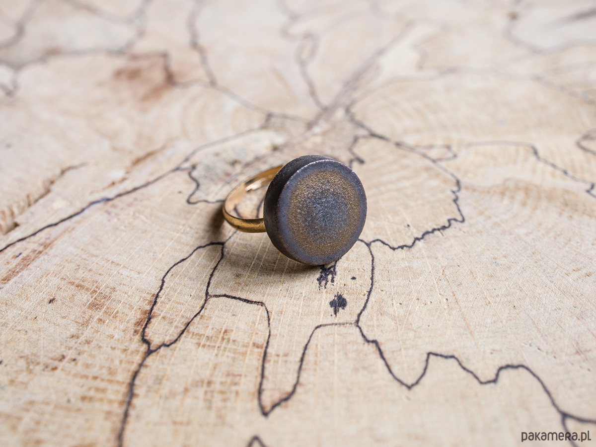 wyjątkowy pierścionek z ceramicznym oczkiem z wzorem mandali