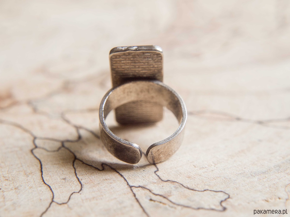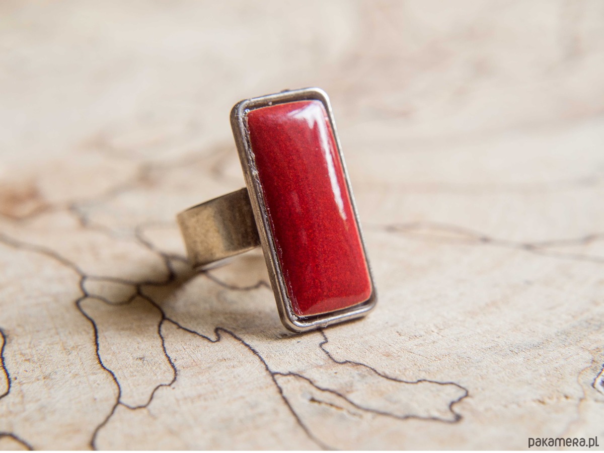 wyjątkowy pierścionek z ceramicznym oczkiem prostokątny czerwony
