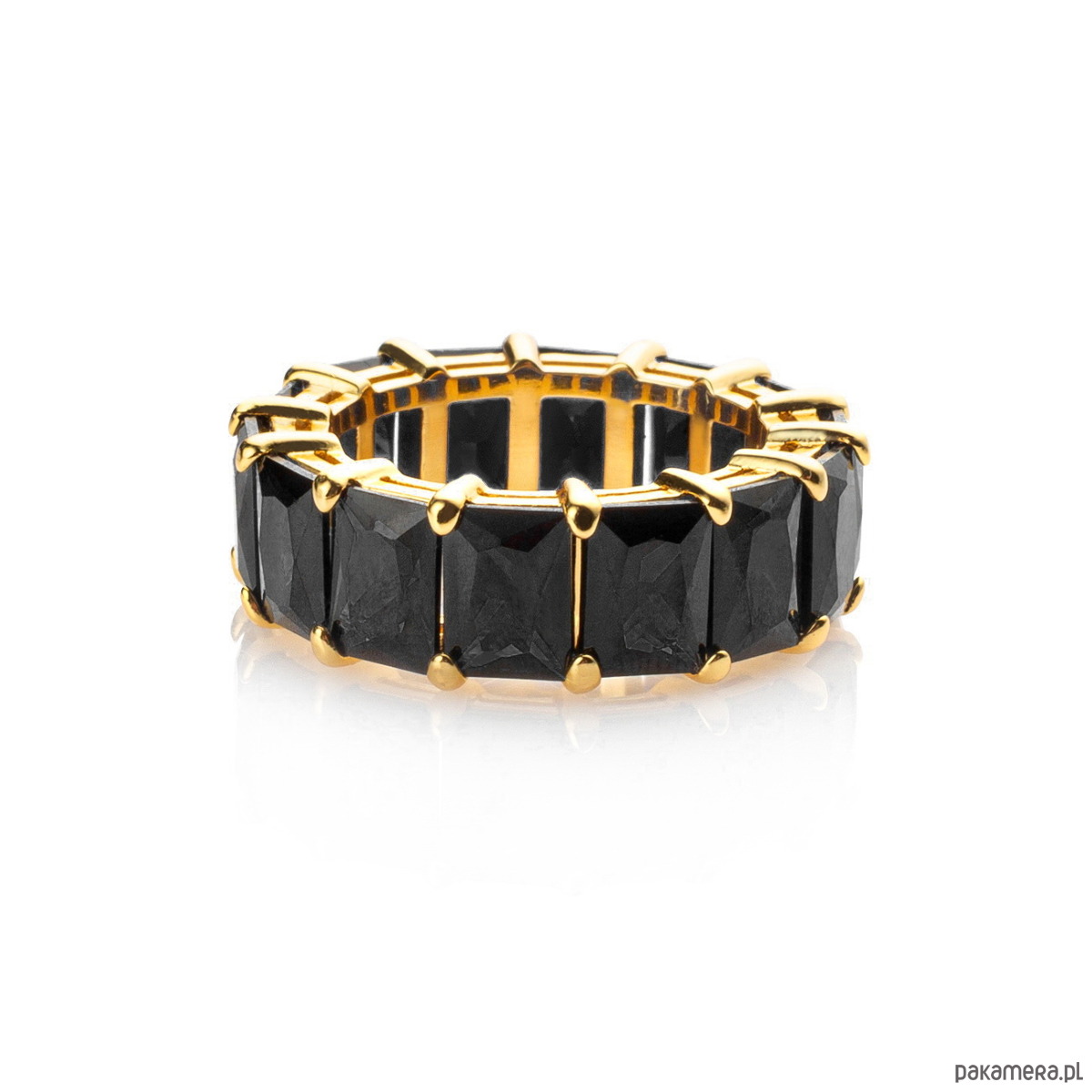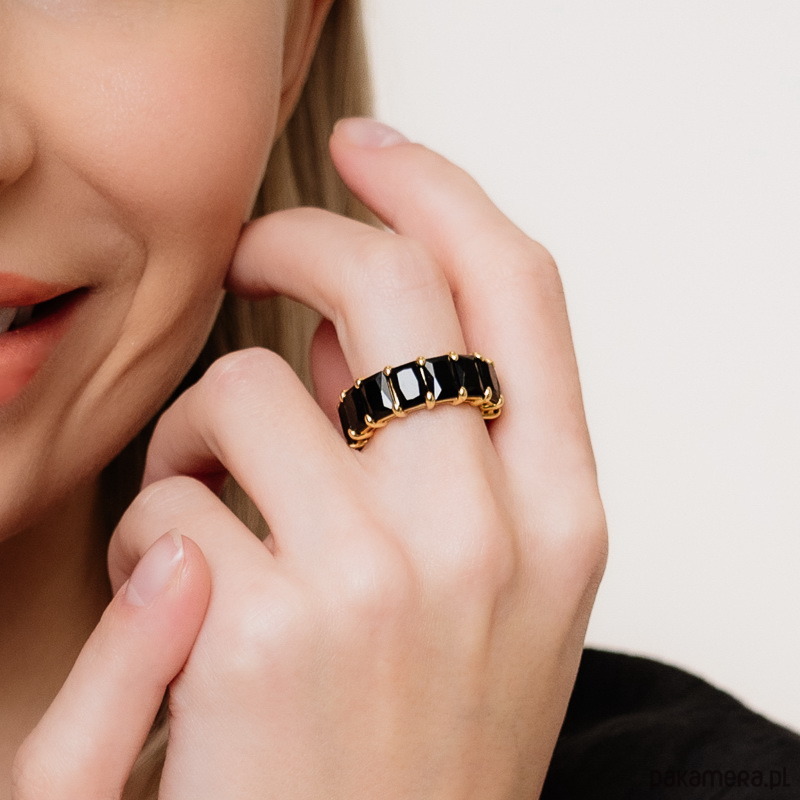 Pierścionek, obrączka ze srebra 925 pozłacanego oraz cyrkoniami bagietami: