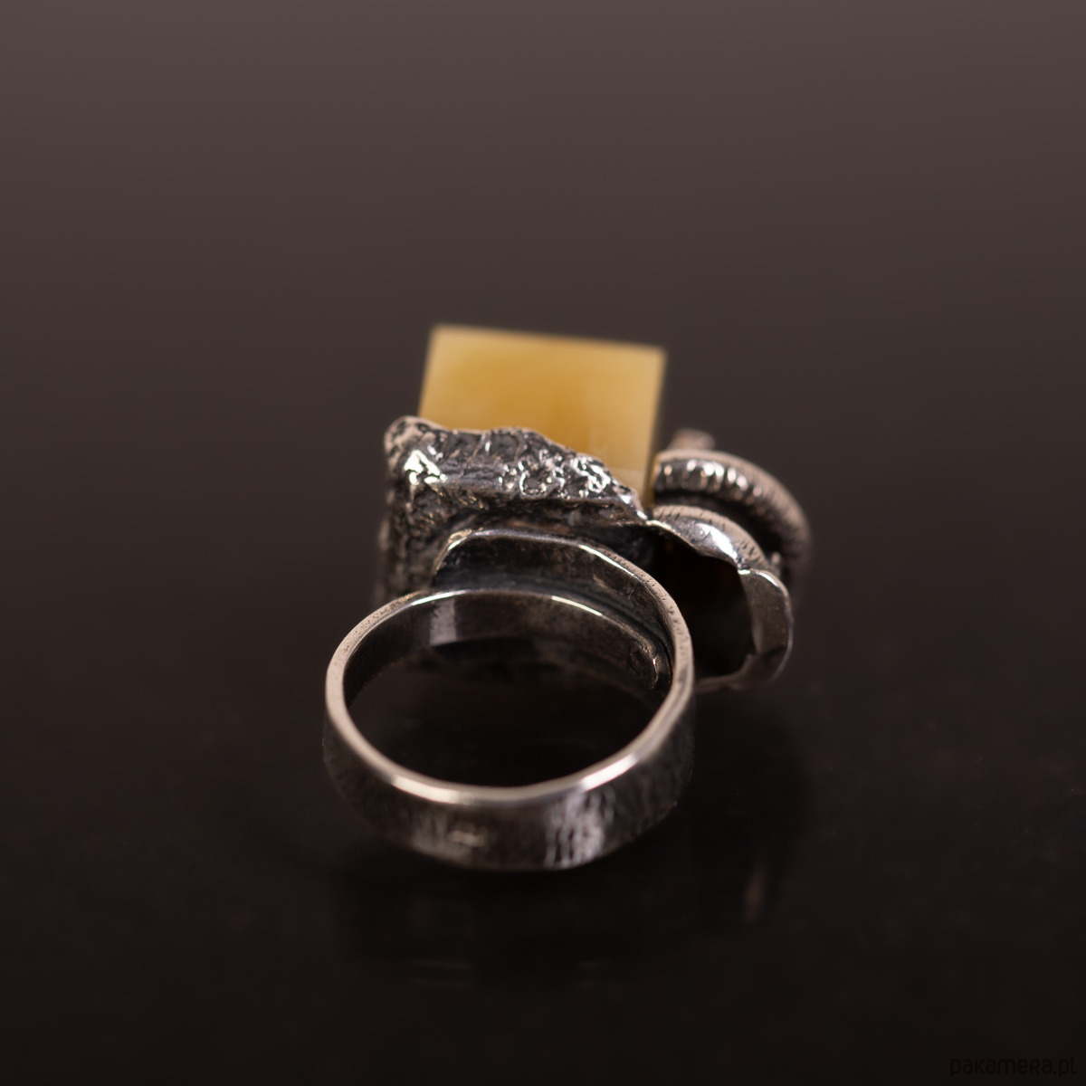 Ręcznie wykonany pierścionek „Bursztynowy Domek”