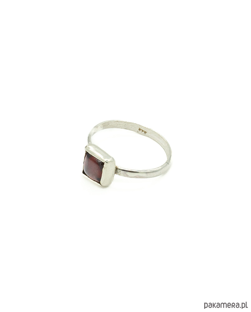 Pierścionek ręcznie wykonany ze srebra 925 oraz naturalnego granatu, osadzonego w klasycznej oprawie.