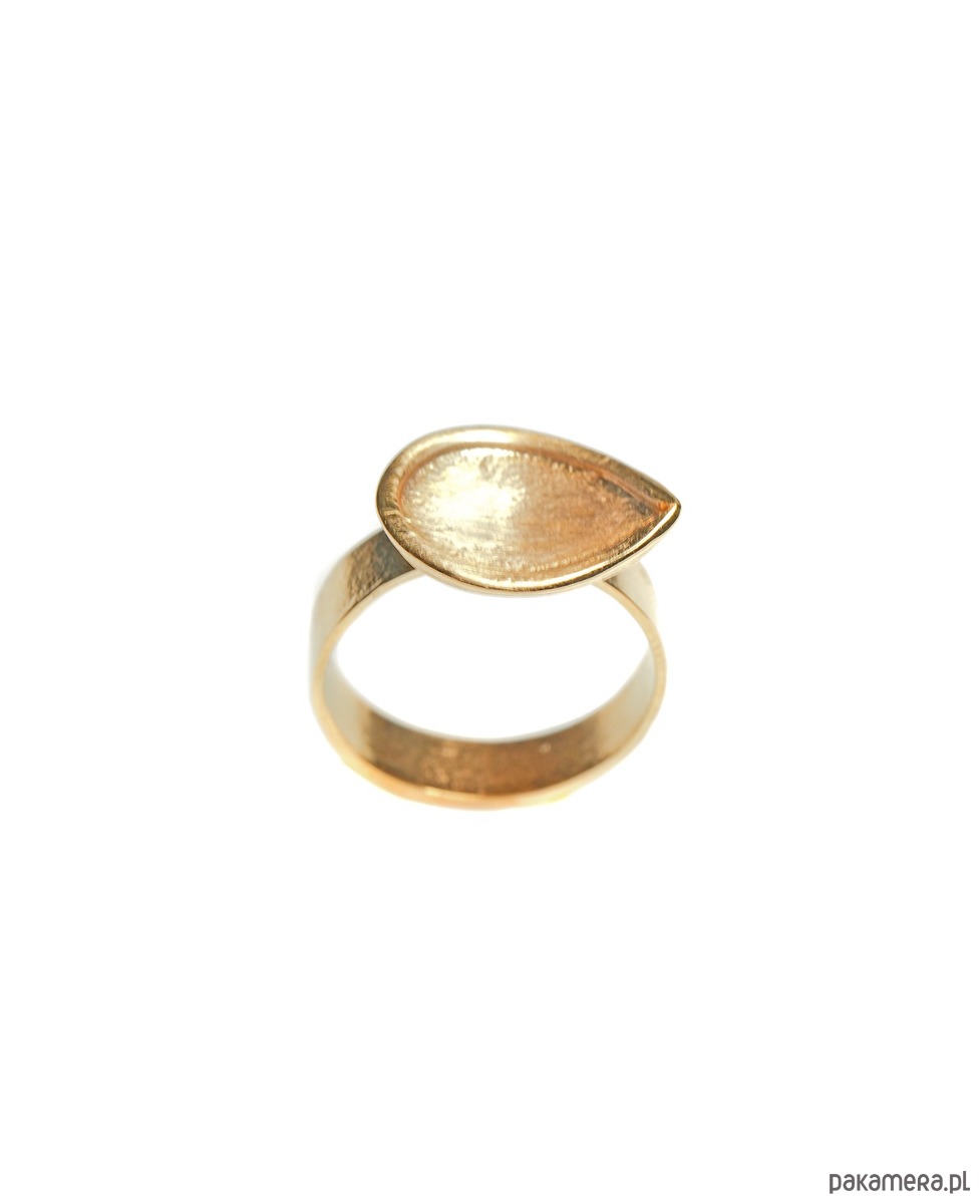 Pierścionek ręcznie wykonany ze srebra 925 oraz naturalnego granatu, osadzonego w klasycznej oprawie. Srebro złocone 24 k złotem, warstwą 1,5 mikrona.