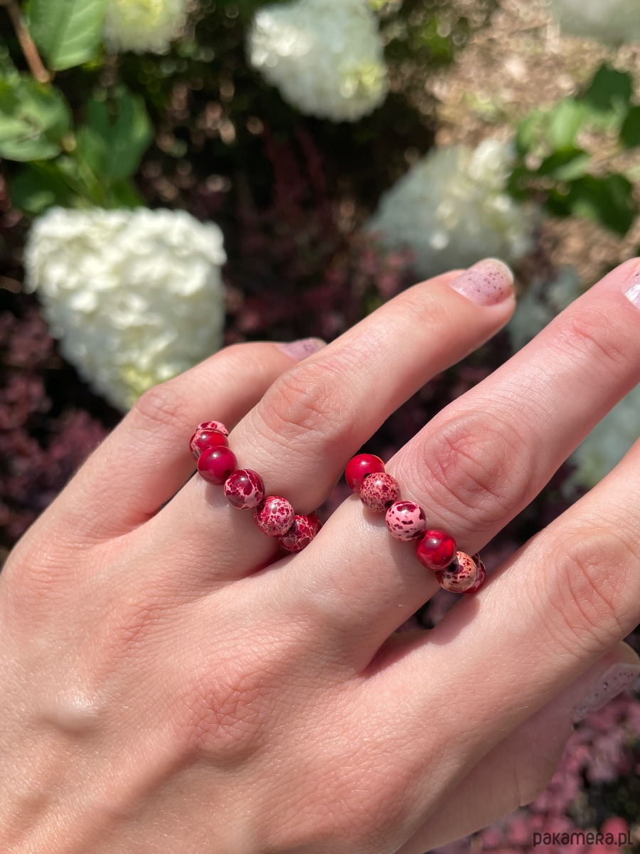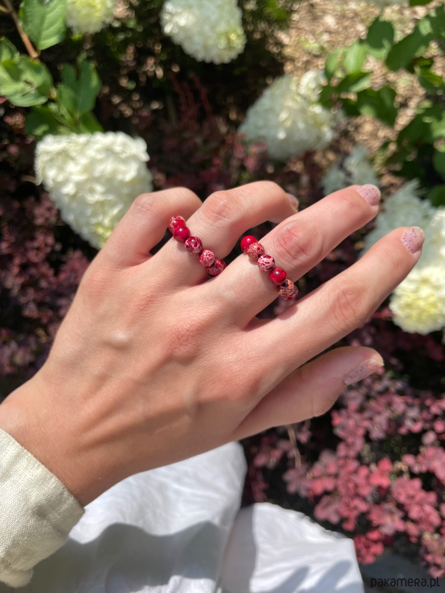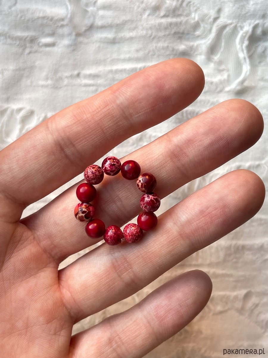Pierścionek z jaspisu wykonany na gumce elastycznej. Każdy pierścionek jest wyjątkowy i inny - nie ma dwóch takich samych kamieni, co czyni je wyjątkowymi 💕