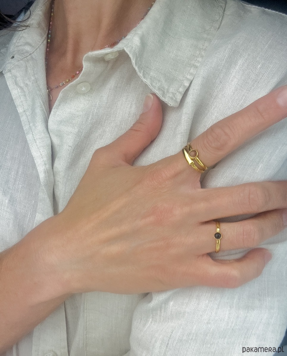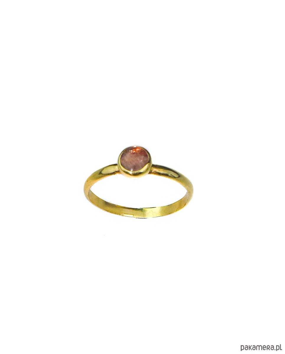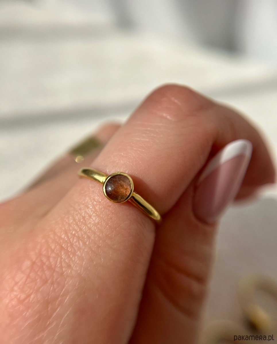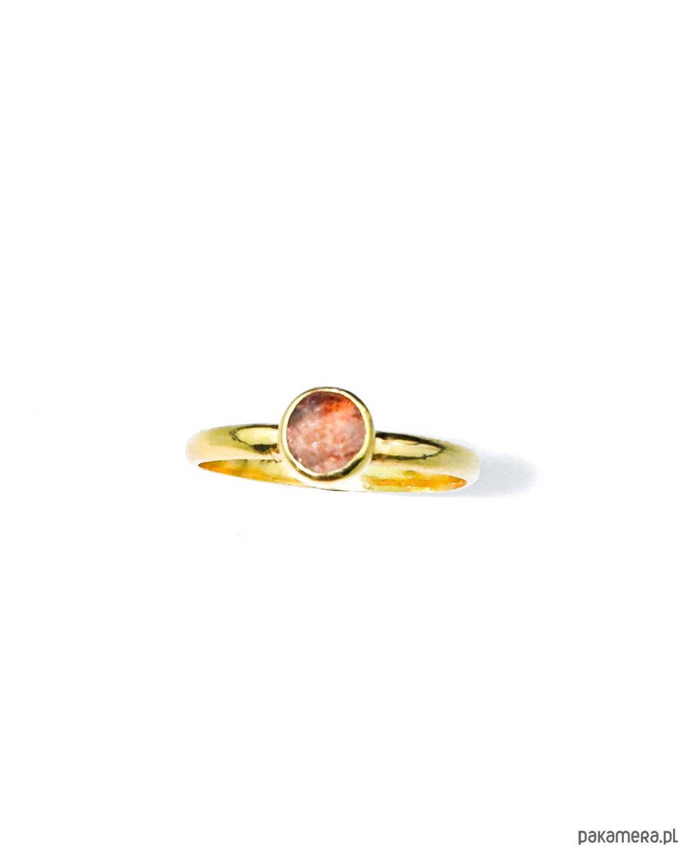 Delikatny, minimalistyczny pierścionek z kamieniem słonecznym w klasycznej oprawie. Wykonany ręcznie w całości ze srebra 925.