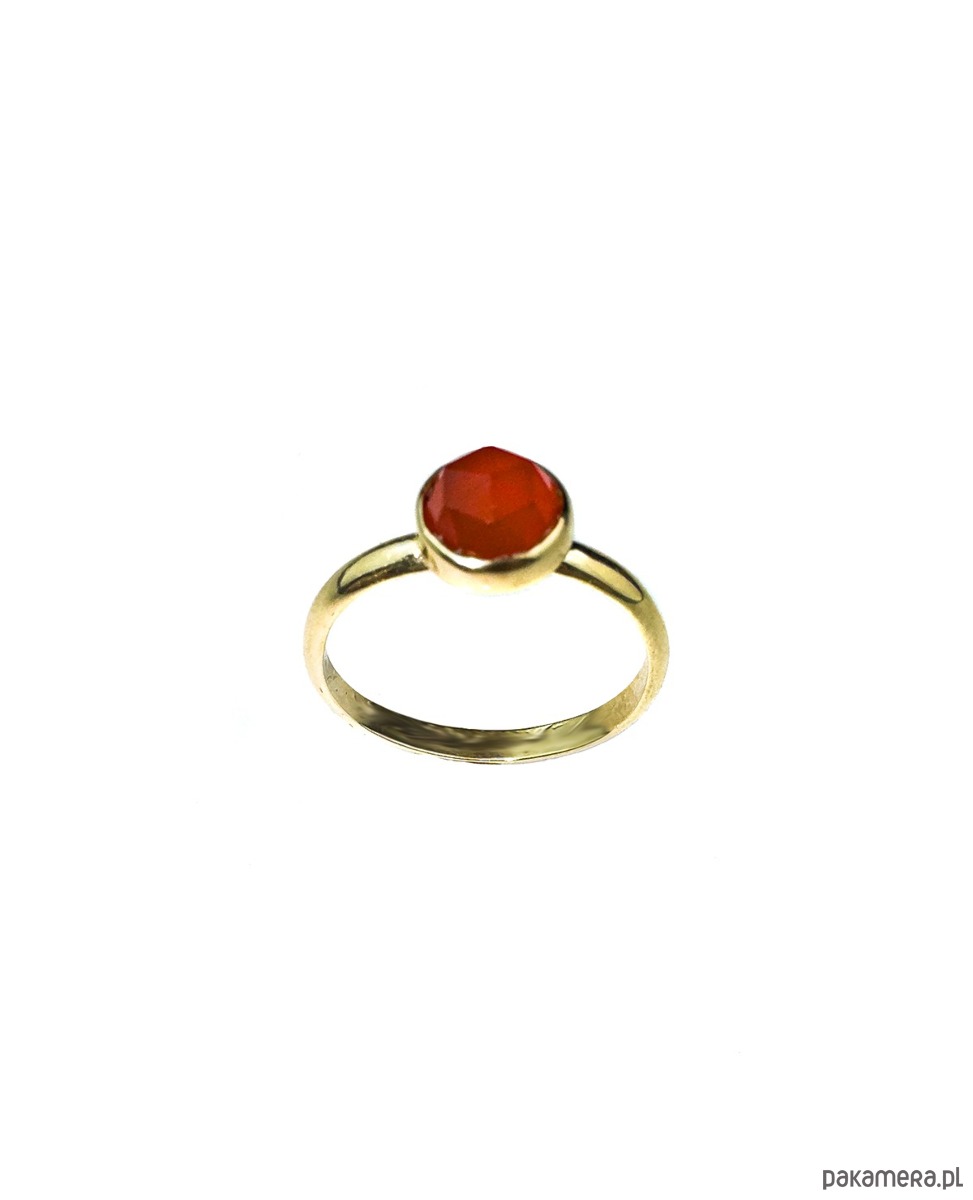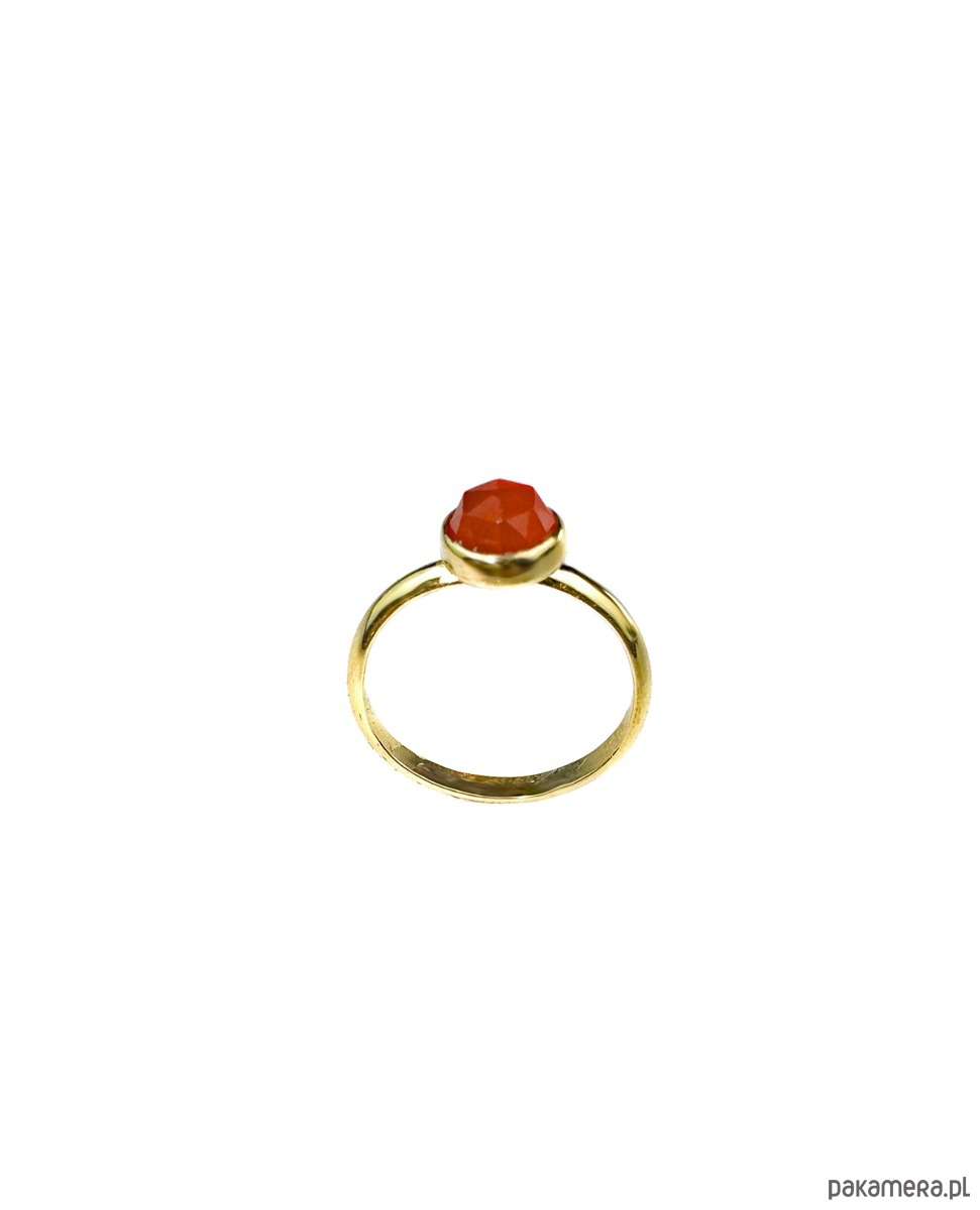 Delikatny pierścionek z naturalnym karneolem w klasycznej oprawie. Wykonany ze srebra 925, złocony 24k złotem.