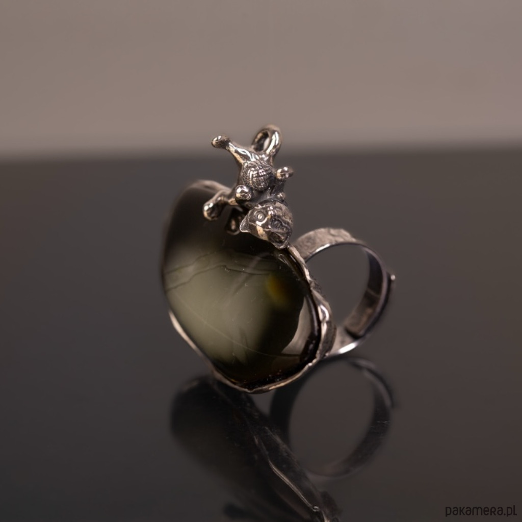 Pierścionek z kotkiem naturalny bursztyn bałtycki