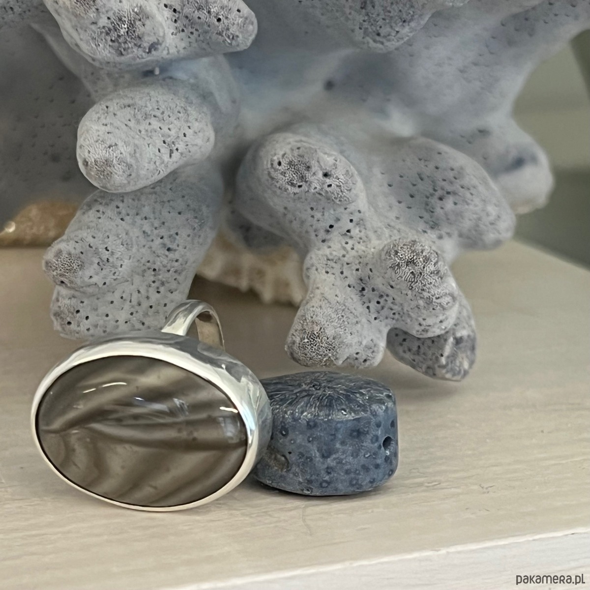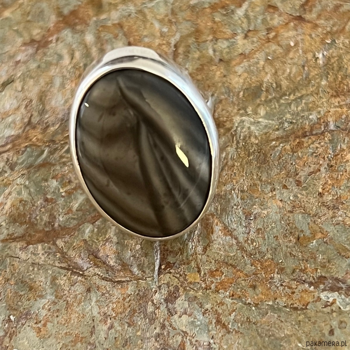 Pierścionek z krzemieniem pasiastym - ręcznie wykonany