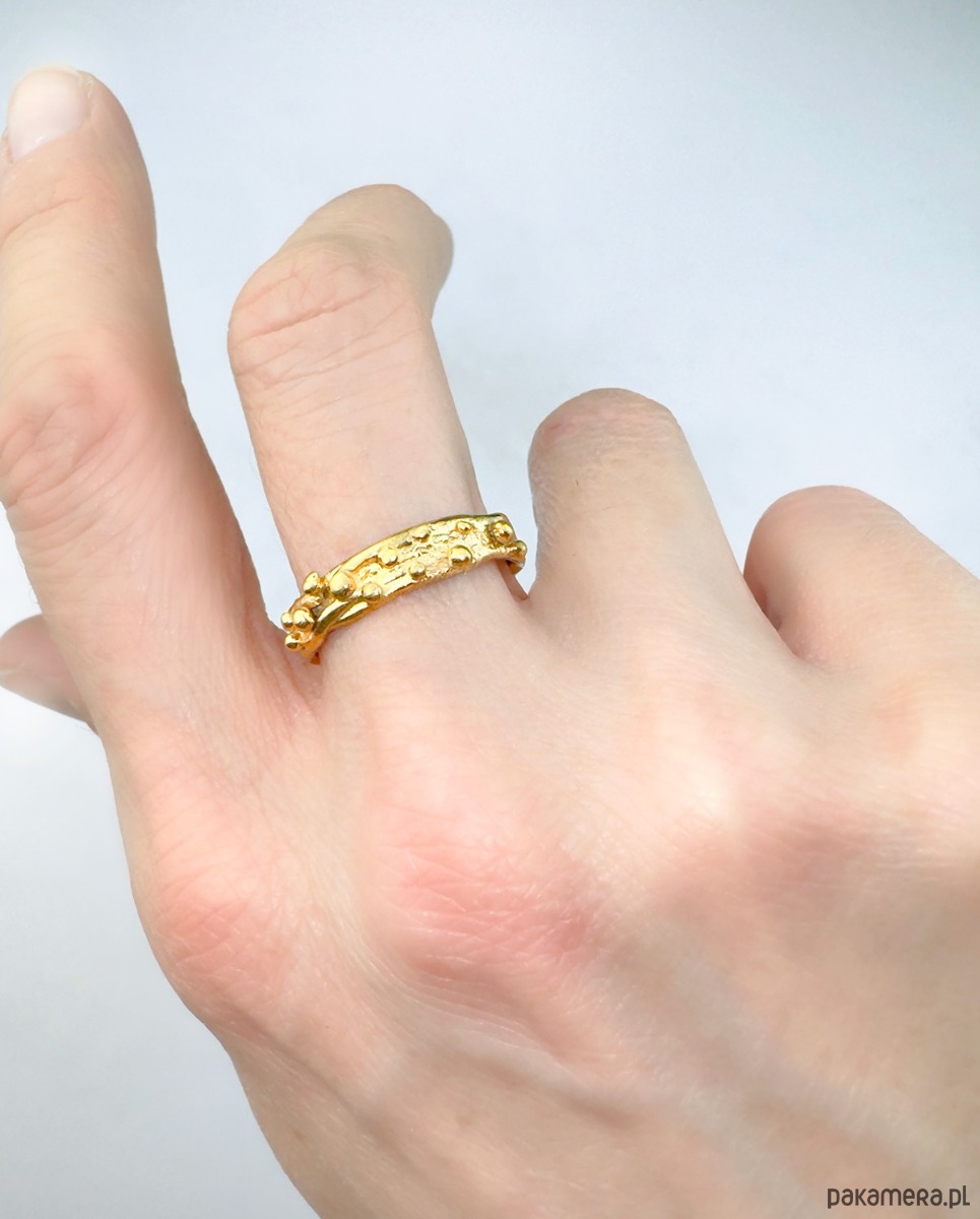 Pierścionek wykonany ręcznie ze srebra 925. Złocony 24 k złotem.