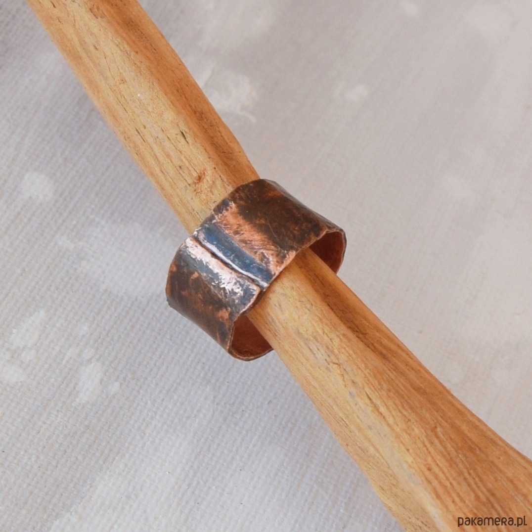 Pierścionek z kutej, oksydowanej miedzi /45/ biżuteria miedziana rękodzieło