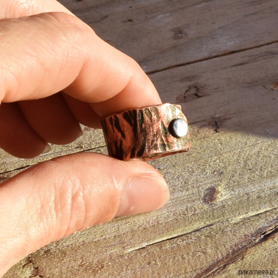 Pierścionek z kutej, oksydowanej miedzi /47/ biżuteria miedziana rękodzieło