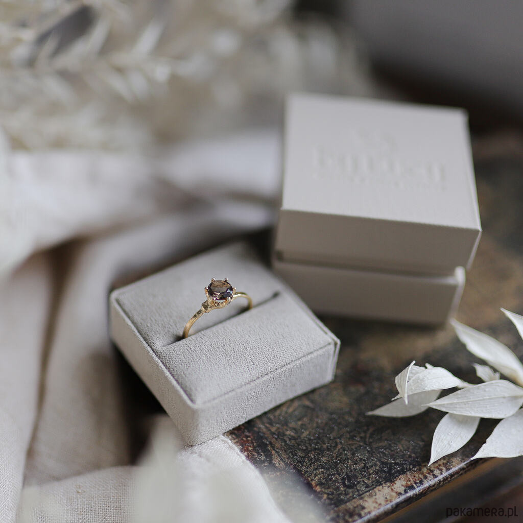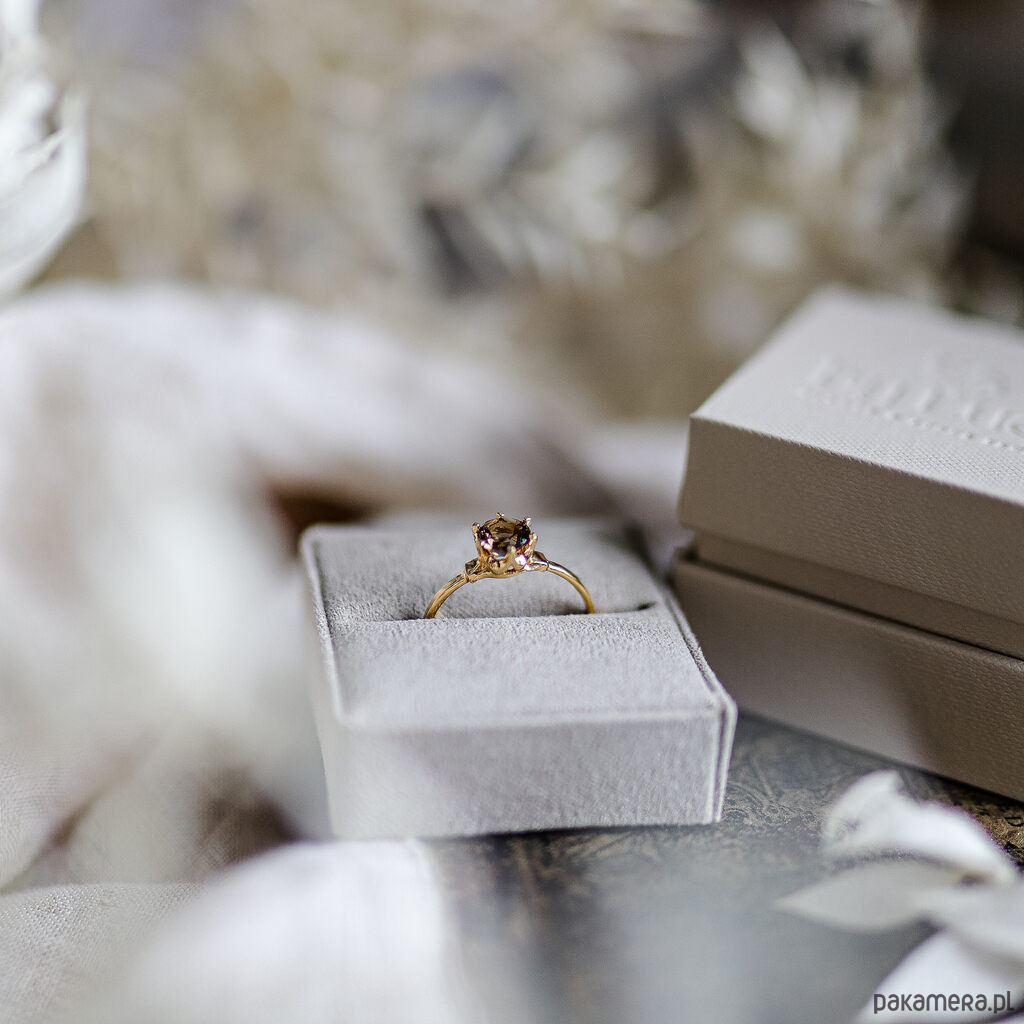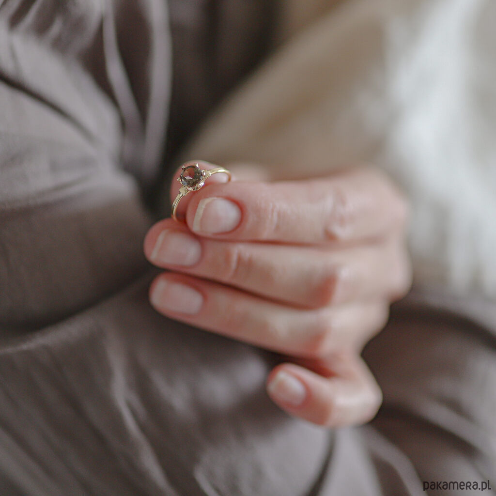 Pierścionek z kwarcem dymnym o pięknej brązowej barwie przywodzi na myśl letni wieczór. Jego subtelne odcienie przypominają ciepłe promienie zachodzącego słońca, które delikatnie odbijają się na powierzchni jeziora. Wydaje się, że kamień emanuje spokojem i harmonią, jak gdyby przenosił nas w magiczny świat marzeń i refleksji. To idealny dodatek do wieczorowej kreacji, dodający jej elegancji i uroku. Nosząc ten pierścionek, można poczuć magię letniej nocy wymieszanej z nutą tajemniczości i delikatnością natury.