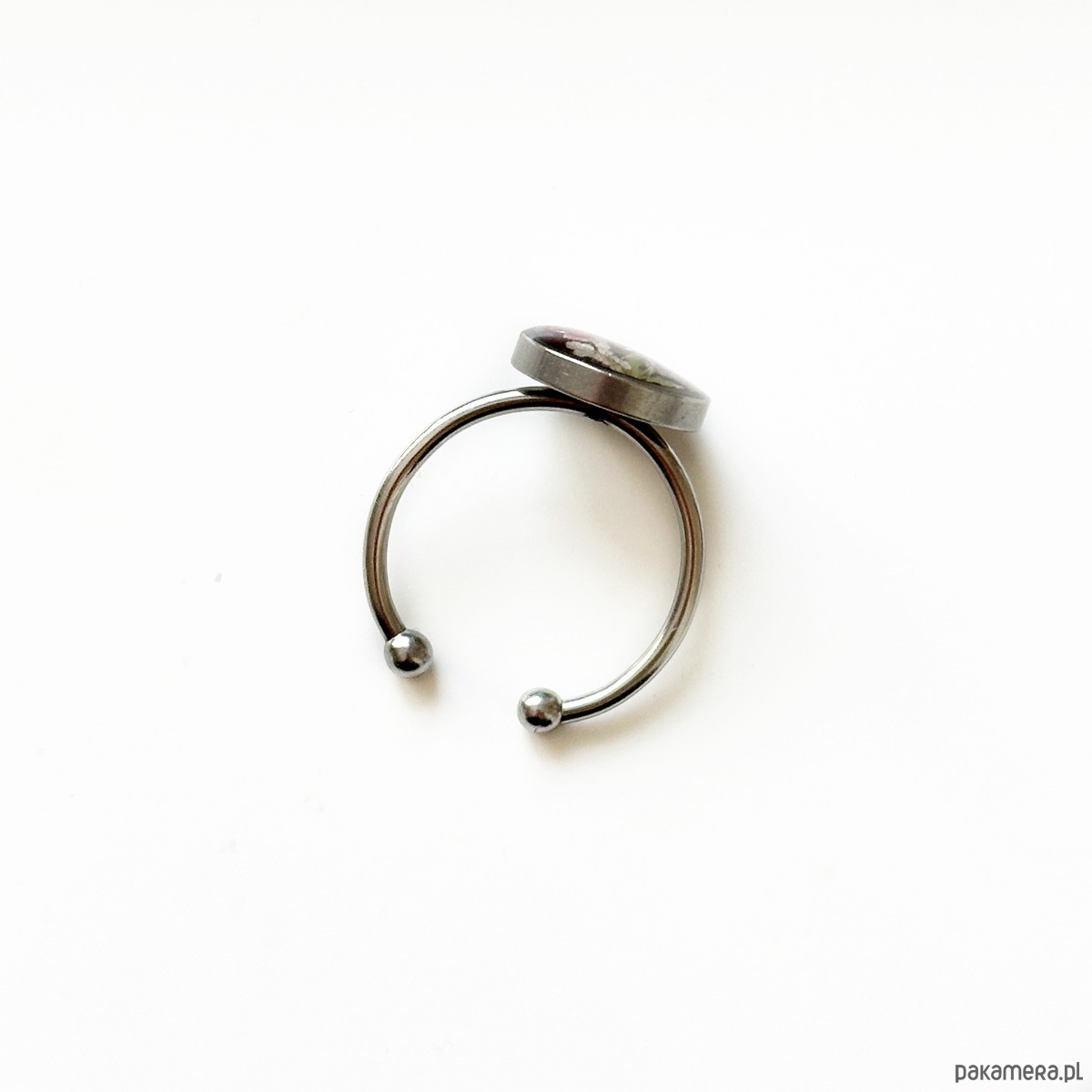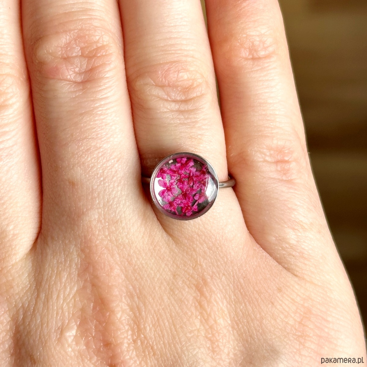 Pierścionek jest regulowany, więc bez problemu dopasujesz sobie do palca. Wystarczy lekko rozszerzyć lub zgiąć.