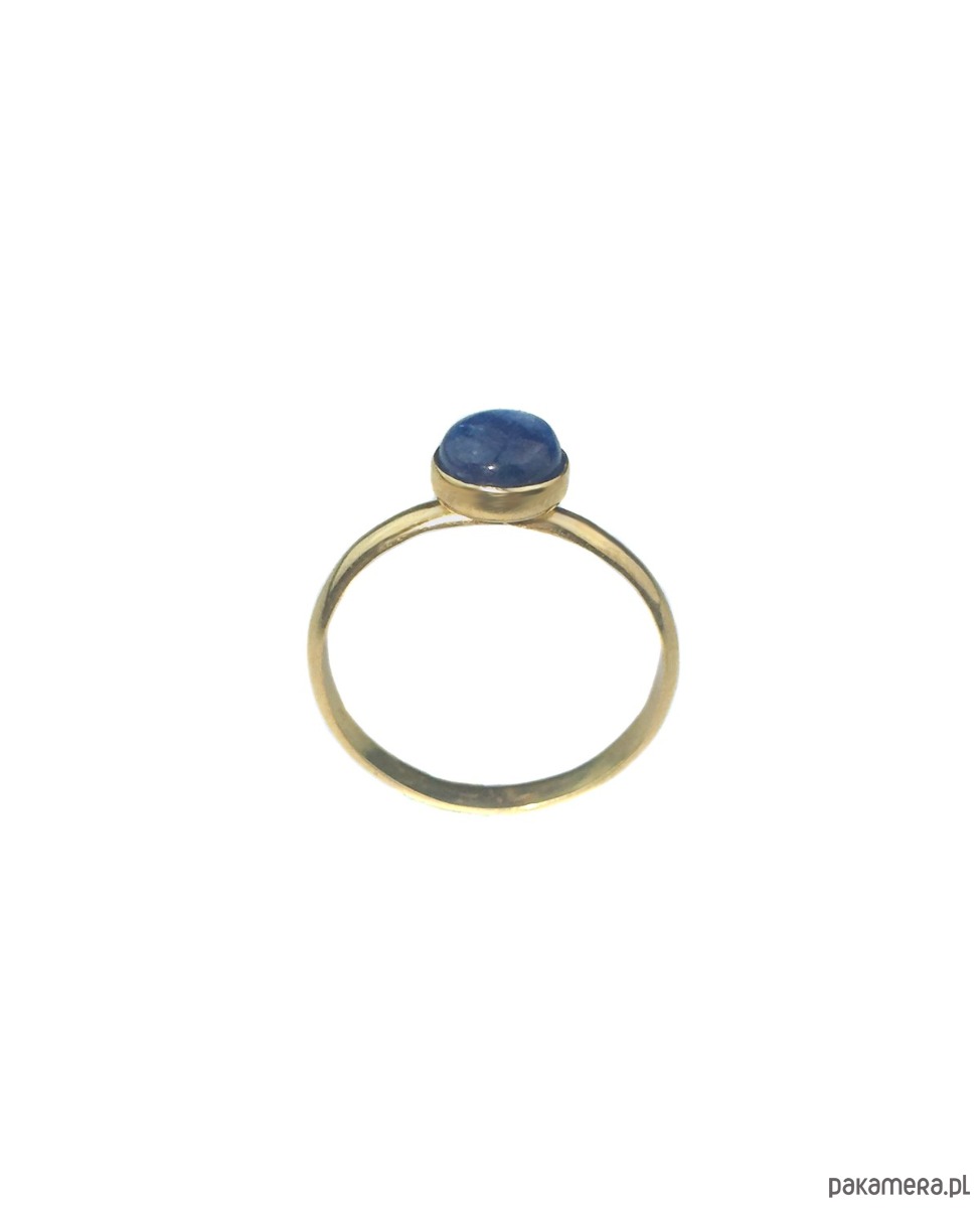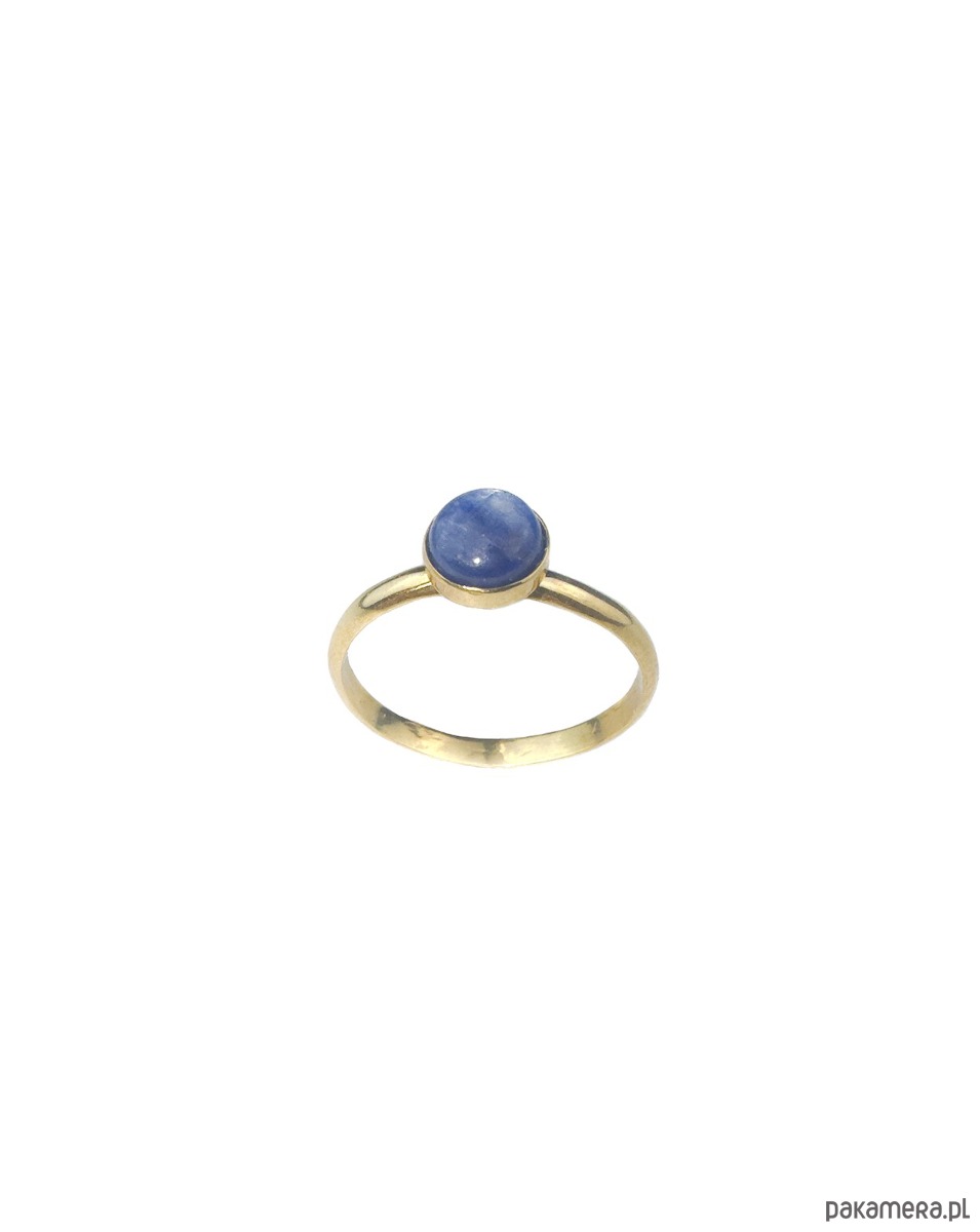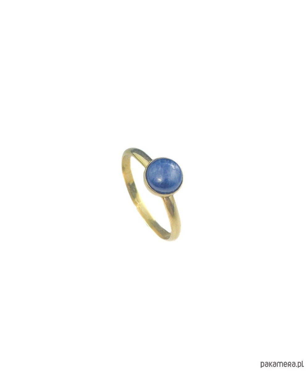 Pierścionek z naturalnym kyanitem w klasycznej oprawie. Wykonany ze srebra 925, złocony 24k złotem.