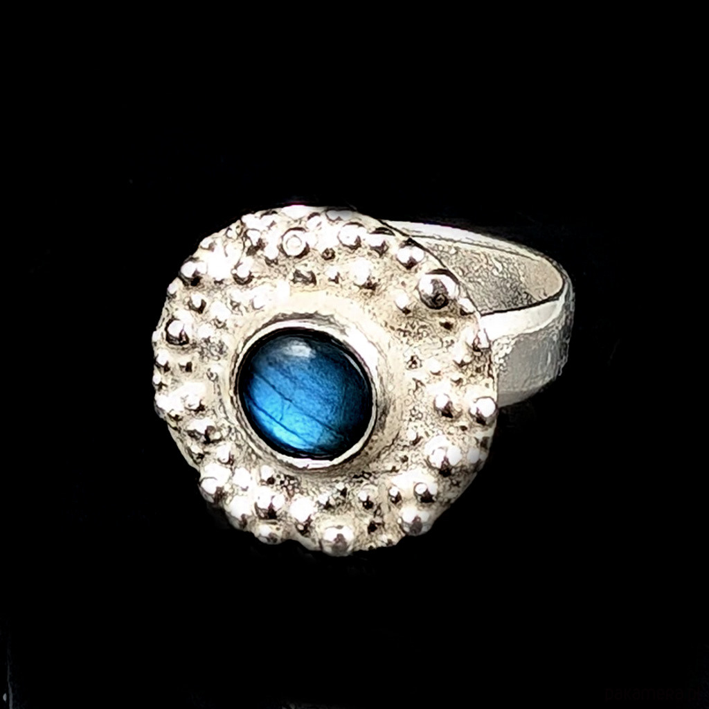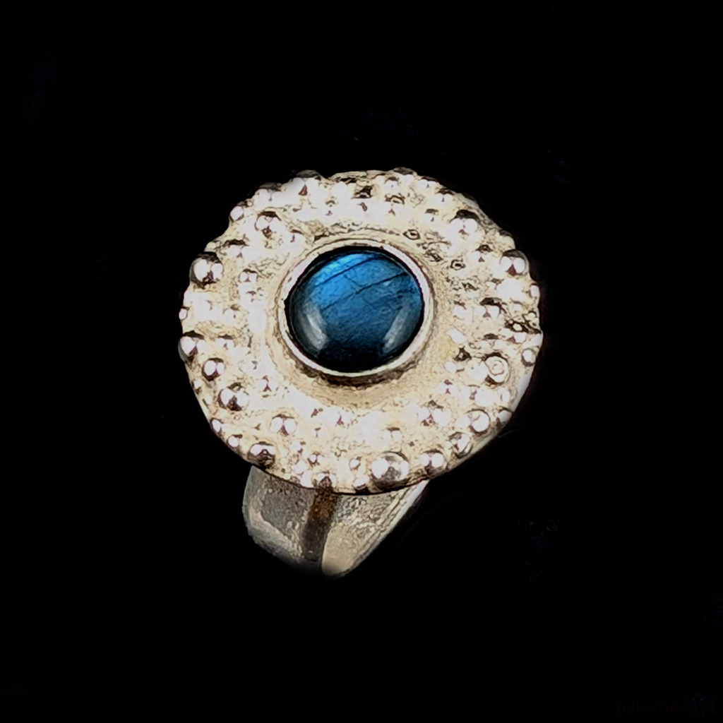 Pierścionek z labradorytem w deszczu srebra