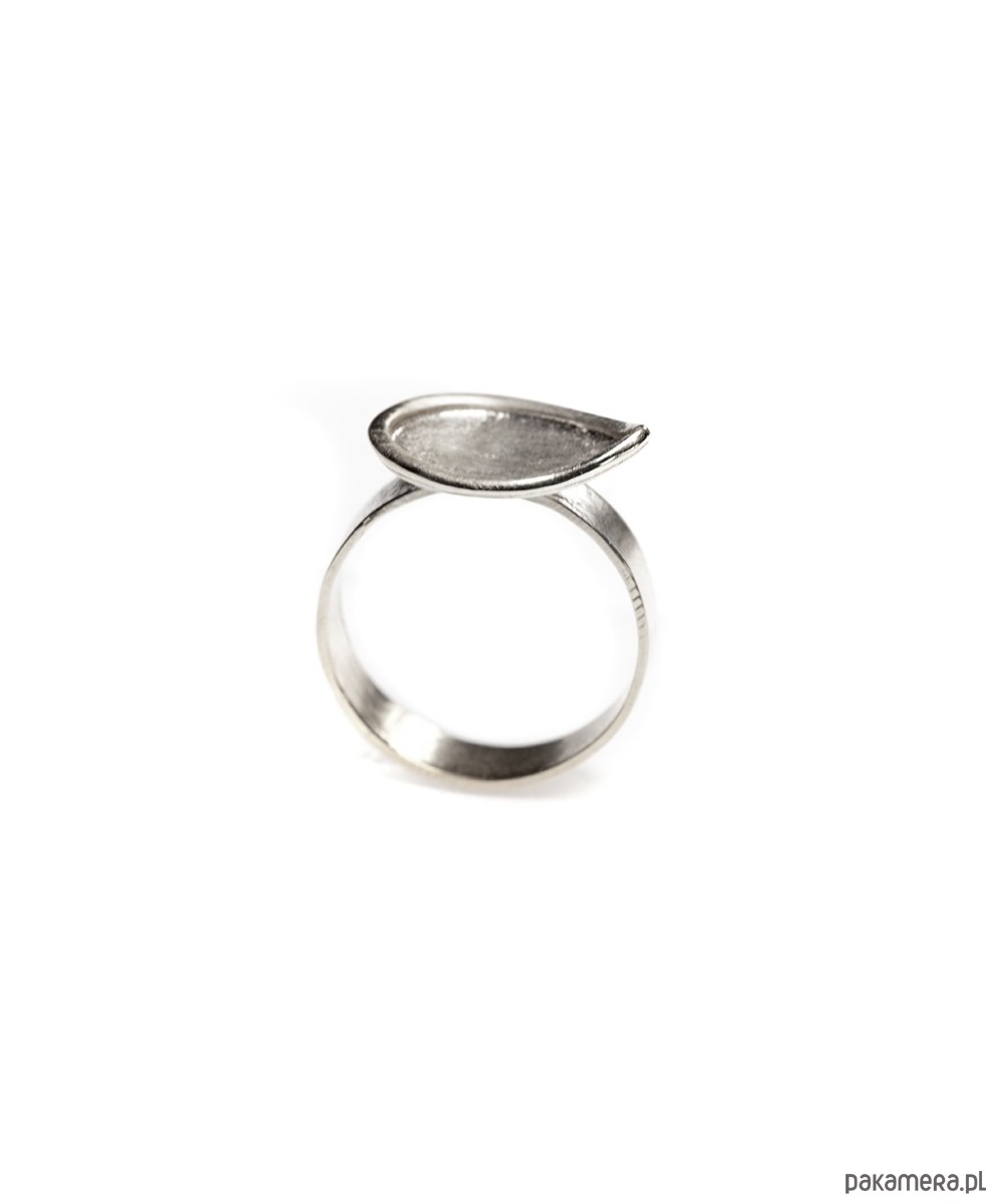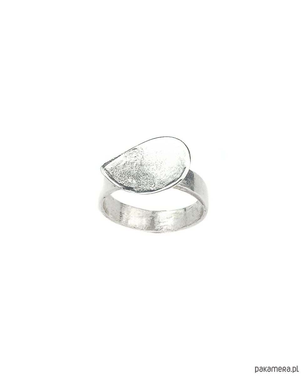Pierścionek wykonany ze srebra 925. Prostą, polerowaną obrączkę zdobi łezka - lekko wklęsła z błyszczącą obwódką, satynowana wewnątrz.