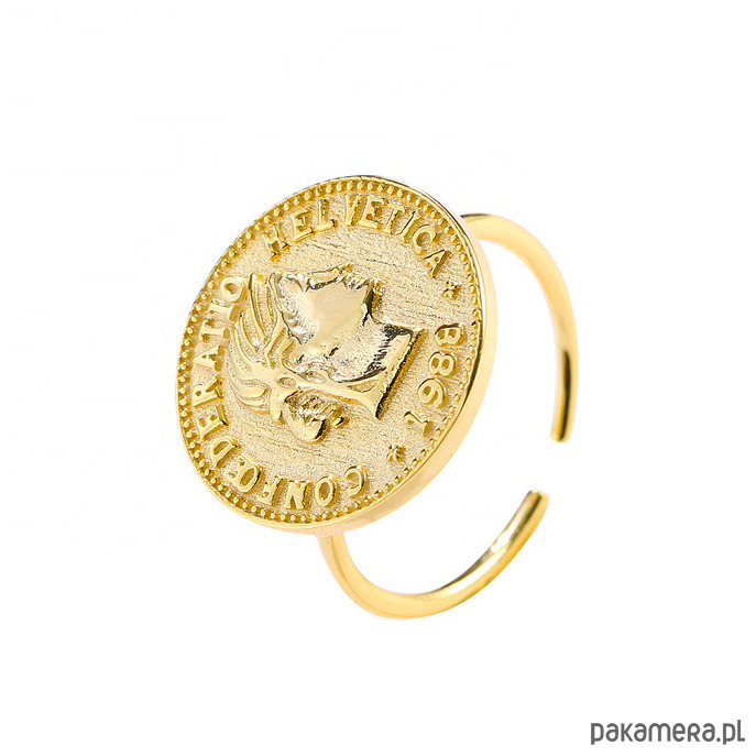 Pierścionek z monetą- srebro 925 pozłacane
