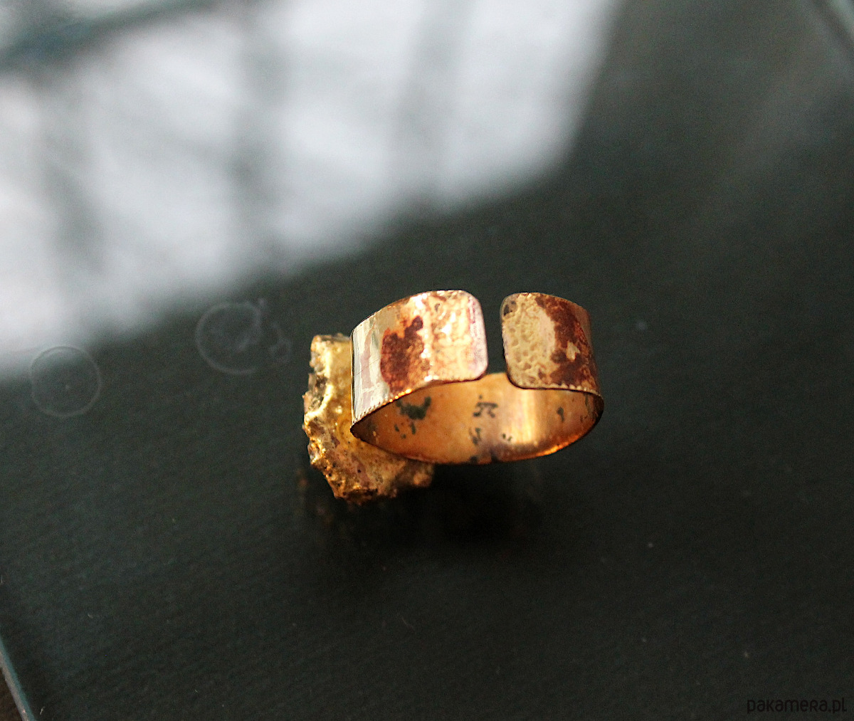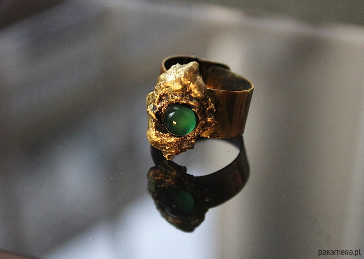 Przepiękny pierścień został stworzony z miłością i starannością. Wykonany ręcznie z mosiądzu, ozdobiony delikatnym kaboszonem z Agatu, prezentuje się niezwykle elegancko i stylowo. Obrączka tego pierścionka posiada regulację na zacisk, dzięki czemu pasuje na każdy rozmiar palca, co sprawia, że jest to idealny prezent dla każdej kobiety. Dodatkowo, mosiądz, z którego został wykonany, nie pozostawia nieprzyjemnych śladów na skórze, co sprawia, że można nosić go przez cały dzień z pełnym komfortem.
