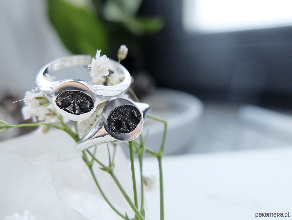 Wyjątkowy pierścionek z odbiciem łapki lub noska Twojego psa uwieczniony w srebrze pr. 925. Pierścionek z łapką/noskiem wykonany jest z wysokiej jakości srebra pr. 925, ręcznie cyzelowany i polerowany. Posiada regulowany rozmiar. Jest wygodny i odpowiedni do noszenia każdego dnia.