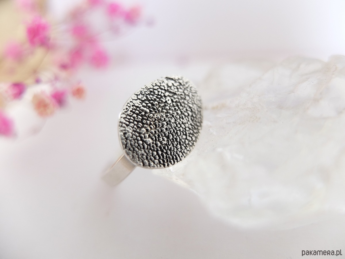 Każdy pierścionek jest unikatowy. Tworzony ręcznie w kilkustopniowym procesie, ze starannością i dbałością o detale co sprawia, że biżuteria z odciskiem jest niepowtarzalna. Wykonana z wysokiej jakości srebra będzie Ci towarzyszyć przez lata.
