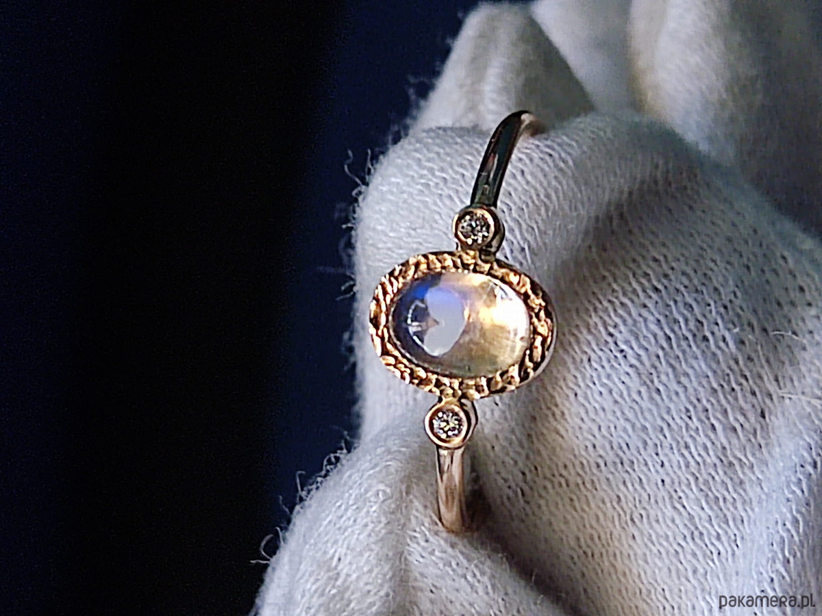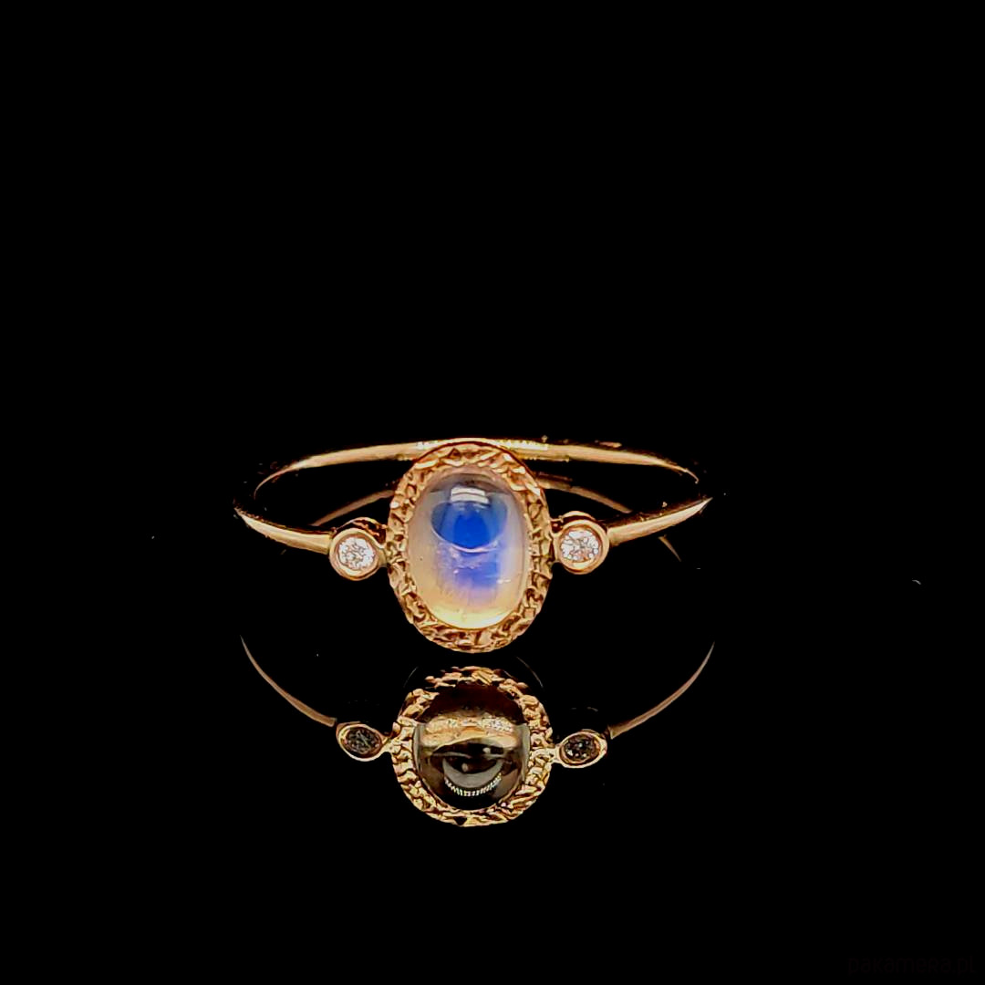 Pierścionek z Owalnym Kamieniem Księżycowym i Diamentami