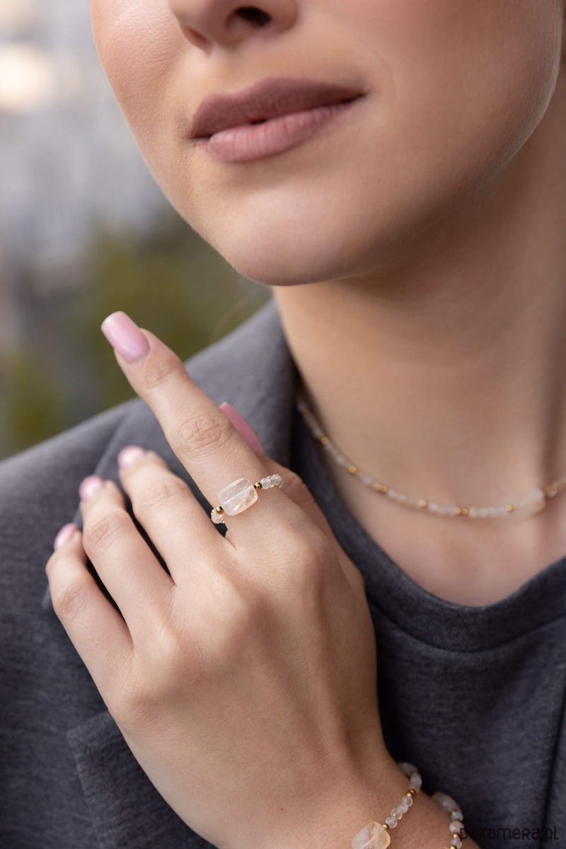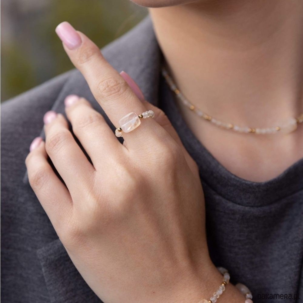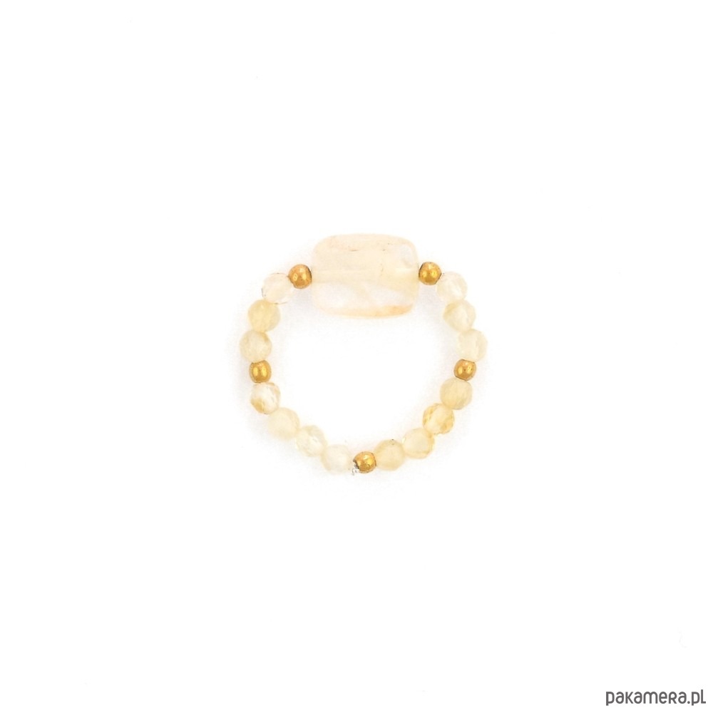 Pierścionek wykonany jest z naturalnych mini kamieni o wielkości 2 mm - Hematyt, 3 mm - Cytryn oraz Pastylki Cytrynu znajdującej się z centralnej części. Hematyt to kamień silnie energetyzujący. Silnie oczyszcza krew. Budzi radość do życia, dodaje odwagi i wiary we własne umiejętności. Cytryn to kamień bogactwa. Sprzyja utrzymaniu stabilności w sferze materialnej oraz satysfakcji z życia zawodowego. Przyciąga wiele dobrych okazji i pomocnych ludzi. Każdy pierścionek wytwarzany jest własnoręcznie przez nas i można o nich powiedzieć śmiało, że to małe dzieła sztuki :) Nasze pierścionki są antyalergiczne, ponieważ w całości są wykonane z kamieni naturalnych. Każdy pierścionek różni się nieco od siebie, ponieważ nie ma dwóch takich samych kamieni. Dla klienta wybieramy kamienie z wielką starannością, zawsze intuicyjnie. Jak dobrać rozmiar: Rozmiar jubilerski nie równa się obwodowi w centymetrach! 1. Wybierz z listy swój rozmiar jubilerski. Zdjęcie miary jest darmowe u większości jubilerów.2. Zmierz obwód palca przy pomocy miękkiej miarki krawieckiej, tak aby ciasno przylegała do palca. Podaj w komentarzu do zamówienia swój dokładny obwód palca w centymetrach. Im dokładniej zmierzysz obwód palca tym lepiej pierścionek będzie się układał. Pamiętaj, że dobrze dobrany rozmiar pierścionka, pozwoli Ci cieszyć się nim dłużej. Wymiary: Kamienie: Cytryn/Hematyt/Pastylka Cytrynu Wielkość kamieni: 3mm/2mm/10x7mm