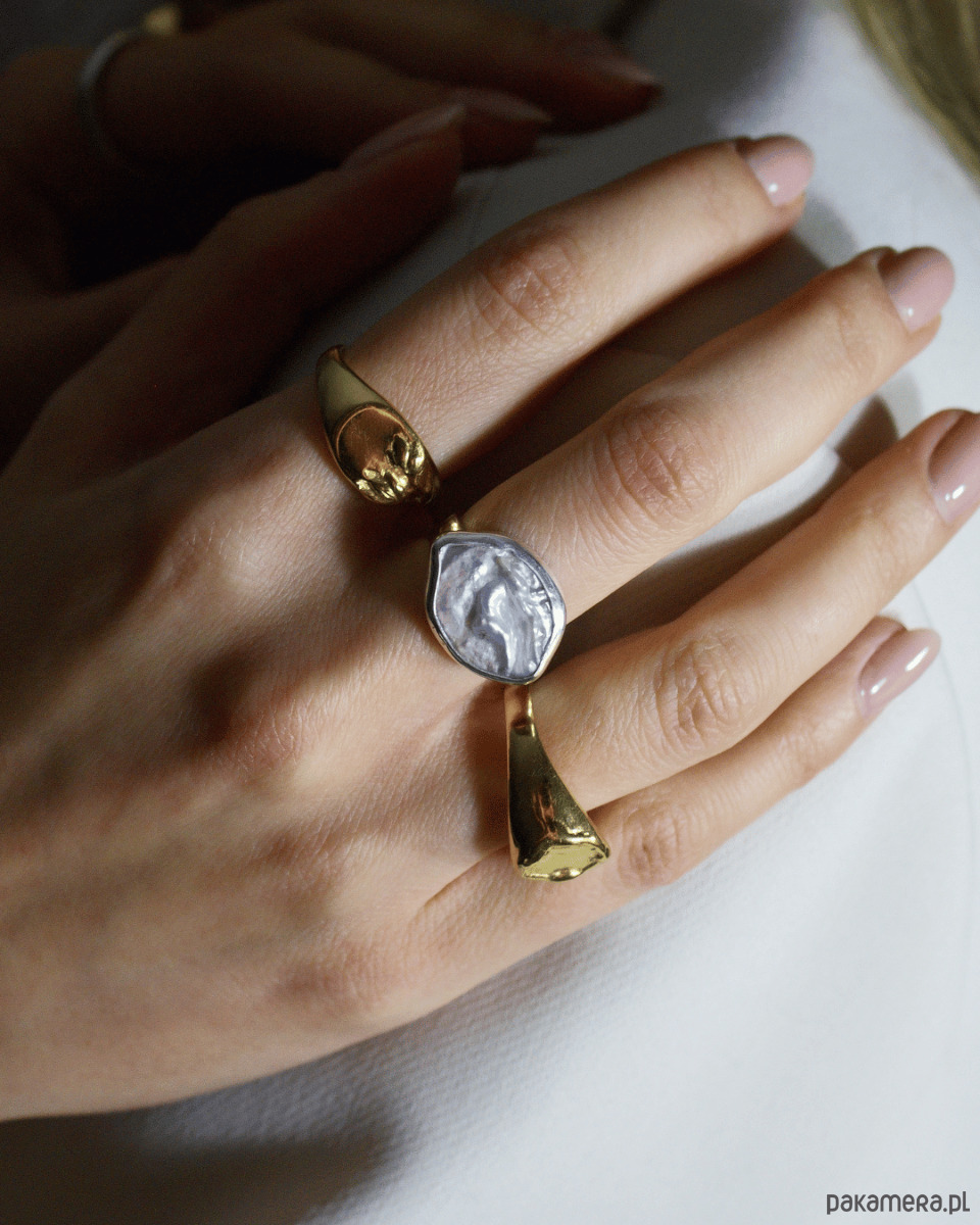 Rzemiosło i Design Pierścionek z perłą barokową wykonałam ręcznie w mojej polskiej pracowni Her-Ring. Solidna, masywna obrączka o szerokości 4,2 mm stanowi surową ramę dla delikatnego blasku kamienia. Ponadto precyzyjna oprawa ze srebra 925 wydobywa z perły wielobarwne refleksy – od pudrowego różu po srebrzystą szarość. Dzięki temu biżuteria przyciąga wzrok i dodaje pewności siebie.