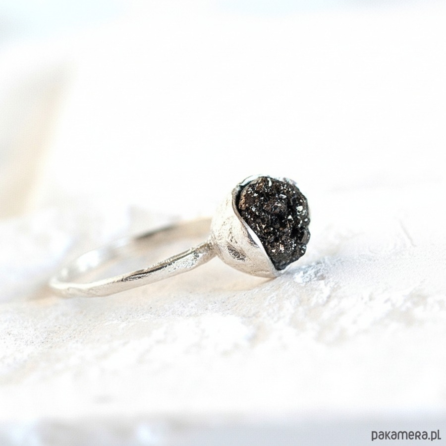 Piryt, znany również jako "złoto głupców" lub kamień ognia, zachwyca swoim metalicznym blaskiem i złotymi refleksami. Wybór pierścionka z tym kamieniem to nie tylko wyraz elegancji, ale także symboliczne nawiązanie do siły, pewności siebie i wewnętrznej mocy.